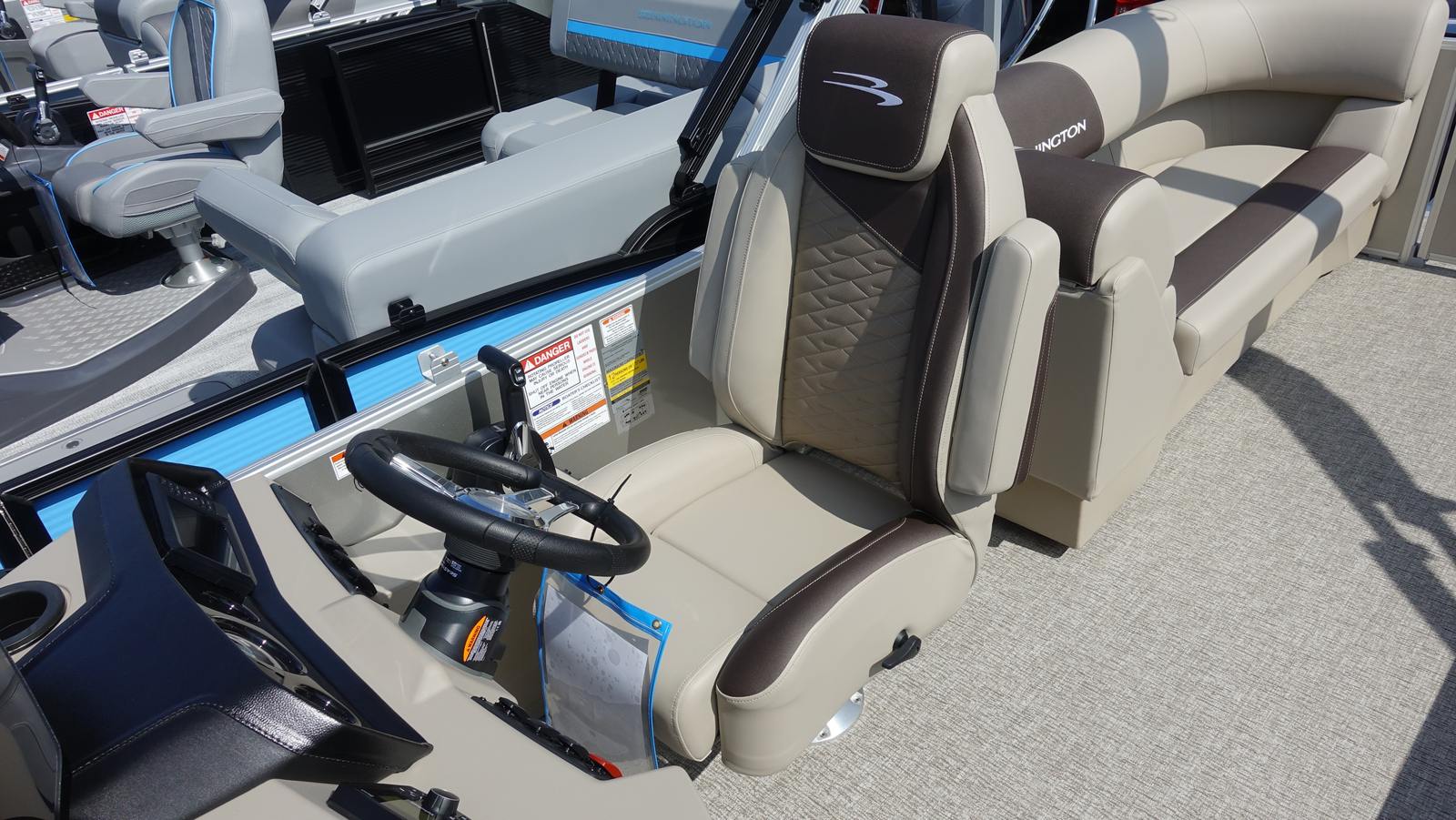 - **Rough Water Package**: Navigate choppier waters with confidence, thanks to the enhanced stability and durability this package provides. - **Dual Switch with Fuse Battery System**: Ensures reliable power management and adds an extra layer of safety to your boating adventures. - **Console Dolce**: The stylish and ergonomic console offers intuitive controls and a sleek design, adding a touch of elegance to the boat's interior. - **Serene Soft Touch Vinyl with Simtex Accents**: Luxurious materials provide a comfortable and visually appealing environment for all passengers. - **Smooth Silver Panels and Metallic Silver Canvas**: These premium finishes not only enhance the boat's aesthetic appeal but also contribute to its overall durability and performance. - **Ironwood Dash Accent**: Adds a sophisticated touch to the interior, blending seamlessly with the other high-quality materials.