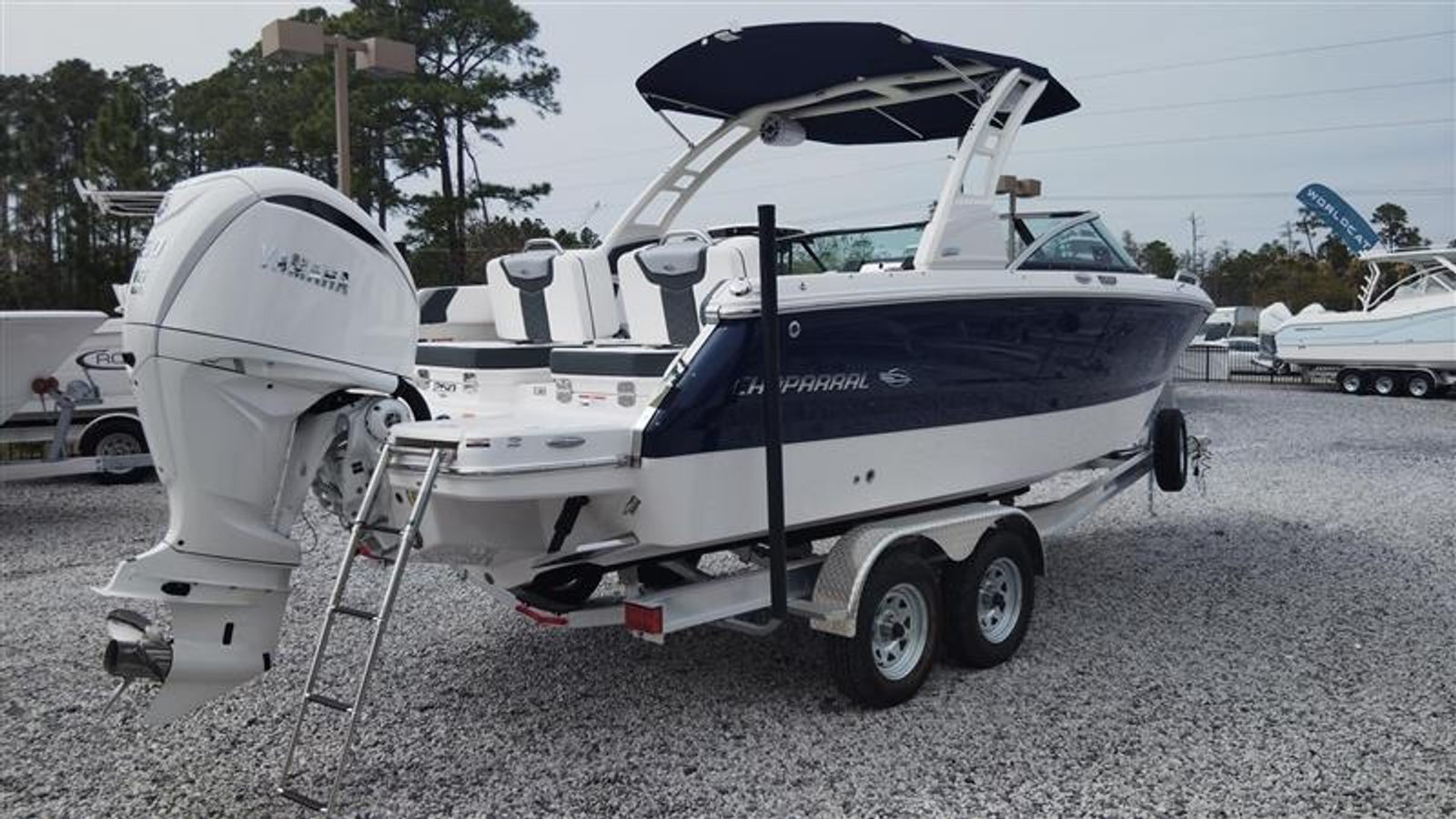 The 2025 Chaparral 250 OSX is loaded with premium features designed to enhance your time on the water. The EFX II Electric Folding Arch Tower in white adds a touch of sophistication while providing practical benefits, such as easy storage and improved overhead clearance. The upgraded JL Audio sound system transforms the cockpit into an entertainment hub, delivering crystal-clear audio for your favorite playlists. Dual color LED underwater lights create a captivating ambiance for evening cruises, while the cockpit and bow cover protect your investment from the elements when not in use.For added convenience, this dual console boat for sale includes a galvanized anchor, ensuring secure mooring wherever your adventures take you. The aluminum tandem axle trailer with galvanized wheels makes transporting your boat a breeze, offering durability and peace of mind on the road. The cockpit interior, finished in elegant slate, provides a comfortable and stylish environment for you and your guests. With a 5-year premium level limited component warranty, you can enjoy your new Chaparral boat with confidence, knowing you are backed by industry-leading support.