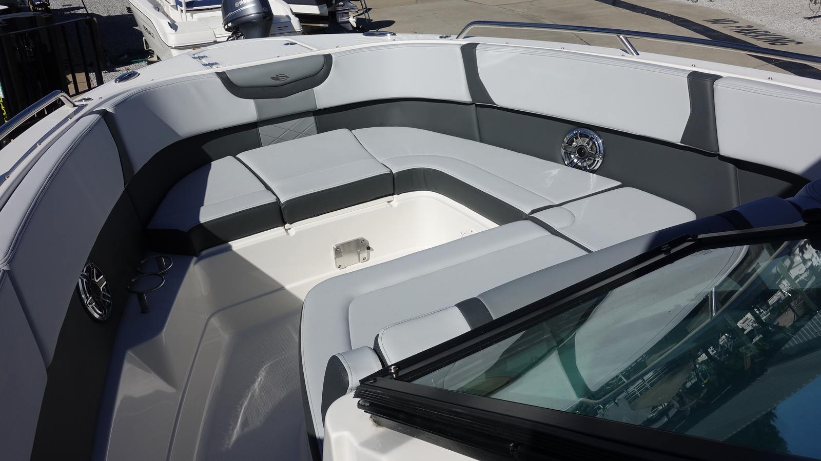 Beyond its luxurious amenities, the Chaparral 280 OSX is engineered for practical, everyday use. The twin Yamaha engines and Digital Electric Steering make docking and maneuvering a breeze, even for less experienced boaters. The inclusion of docking lights and a bow scuff plate adds peace of mind when navigating marinas or tight spaces. Fender holders keep your gear organized and easily accessible, while the air pump ensures you are always ready for water-based fun.The bow and cockpit covers help protect your boat from the elements, reducing maintenance and preserving its pristine condition. The spacious layout offers plenty of storage for gear, water toys, and personal items, making it easy to keep the deck clutter-free and ready for action. Whether you are planning a day trip or a weekend adventure, the Chaparral 280 OSX delivers the versatility and convenience you need for hassle-free boating.