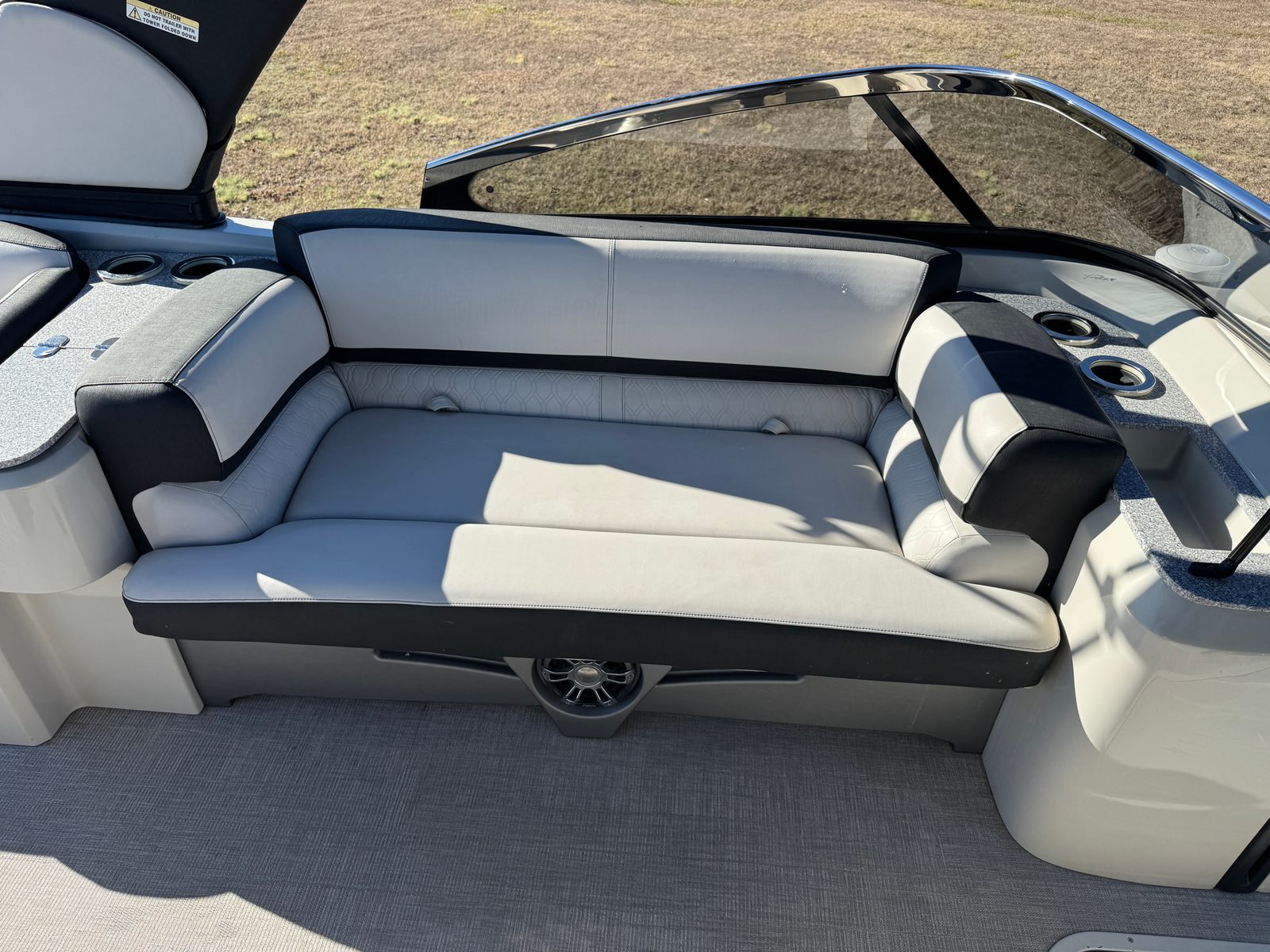 The Avalon Wake Toon is packed with features designed to enhance your time on the water. Its spacious 23-foot deck offers ample room for guests, making it a fantastic choice for social gatherings and family outings. The pontoon’s layout is thoughtfully designed to maximize comfort and convenience, with plenty of seating and open space for relaxation or activities.Special features of the Avalon Wake Toon include a powerful engine with 230 hours of use, ensuring reliable performance and longevity. The pontoon’s construction reflects Avalon’s commitment to quality, with durable materials and attention to detail throughout. Every aspect of the boat is engineered to provide a smooth, stable ride, making it suitable for a wide range of recreational activities.