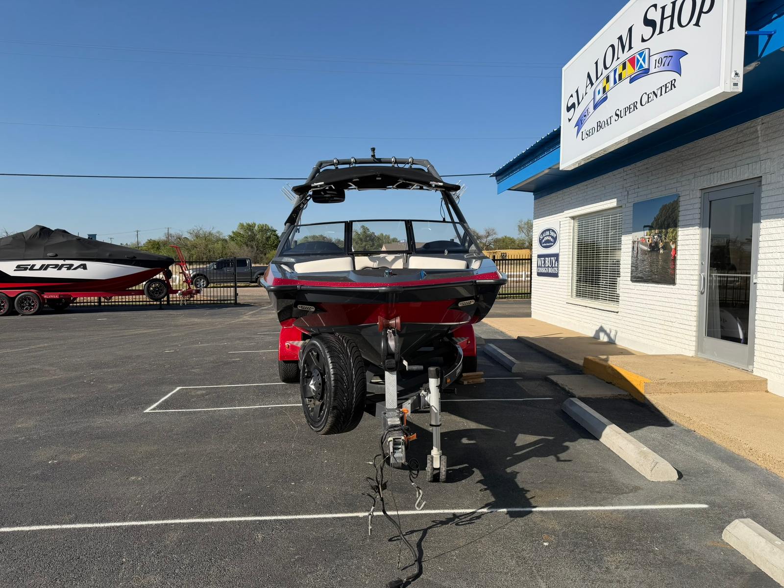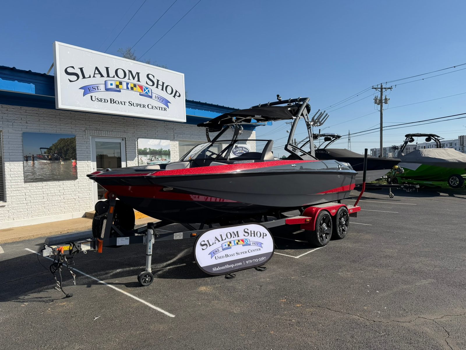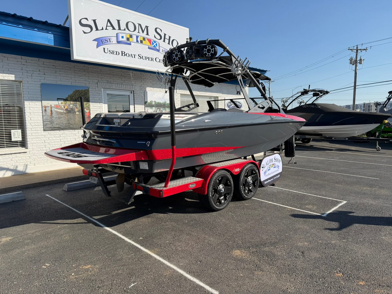 Now available at our Used Boat Super Center in Lewisville, this 2013 Axis A20 Recon Edition is a clean, low-hour wake boat known for its simplicity, reliability, and strong wake performance. Finished in a sharp red metal flake and grey gelcoat with a white interior and digital camo accents, this A20 is powered by an Indmar Monsoon 5.7L fuel-injected engine producing 350 horsepower with only 80 hours.