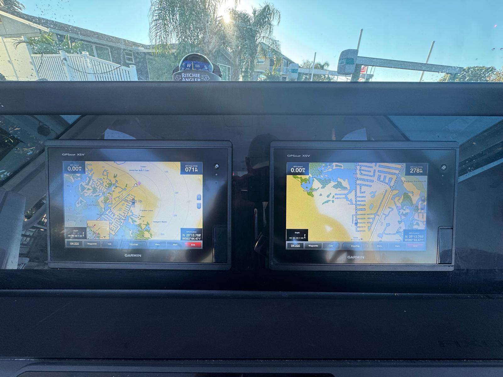 Twin Garmin 12" multifunction displays with full engine integration