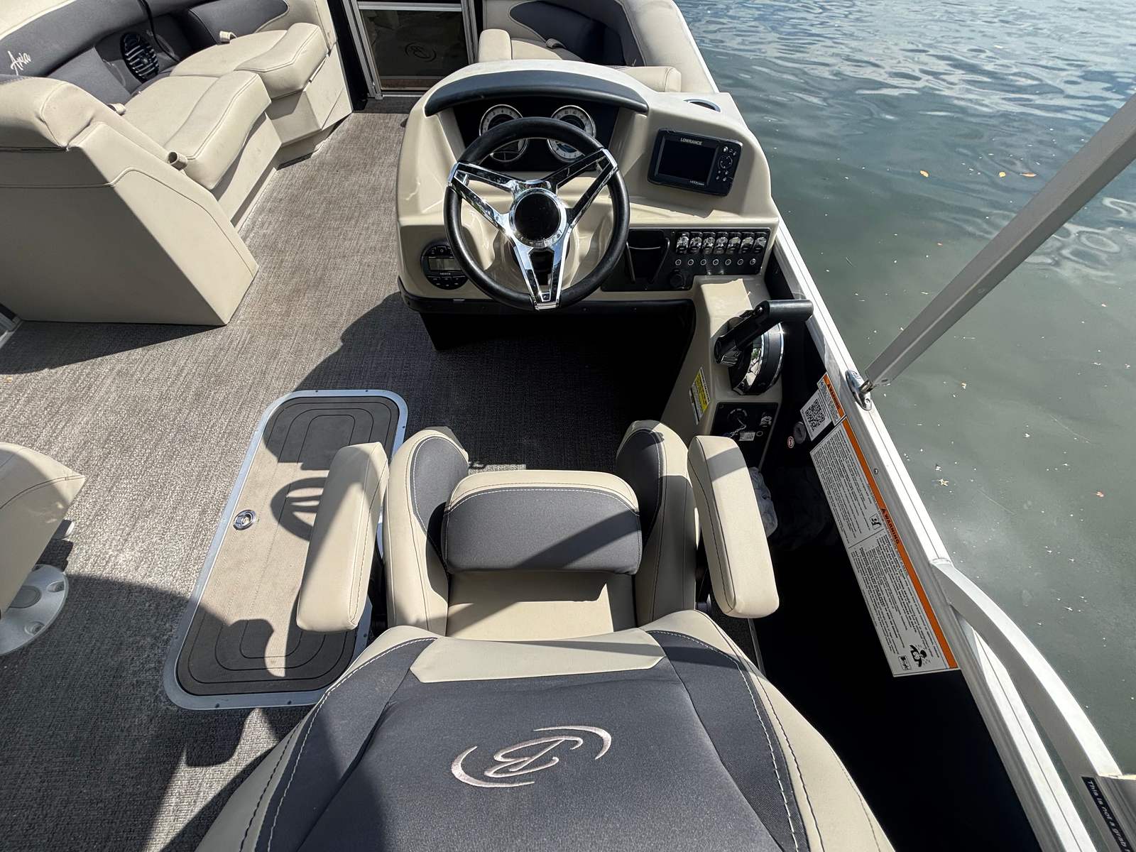 The 2023 Barletta Aria A22UC is a 21-foot pontoon that exudes modern elegance and robust construction. As a used pontoon boat for sale, it offers exceptional value while maintaining the high standards that Barletta is known for. With a length of just over 21 feet, this model strikes the perfect balance between spaciousness and maneuverability, making it ideal for both intimate family outings and lively gatherings with friends. The Aria A22UC’s thoughtful design ensures that every inch of space is optimized for comfort and enjoyment, while its 2023 build year guarantees up-to-date features and contemporary styling.