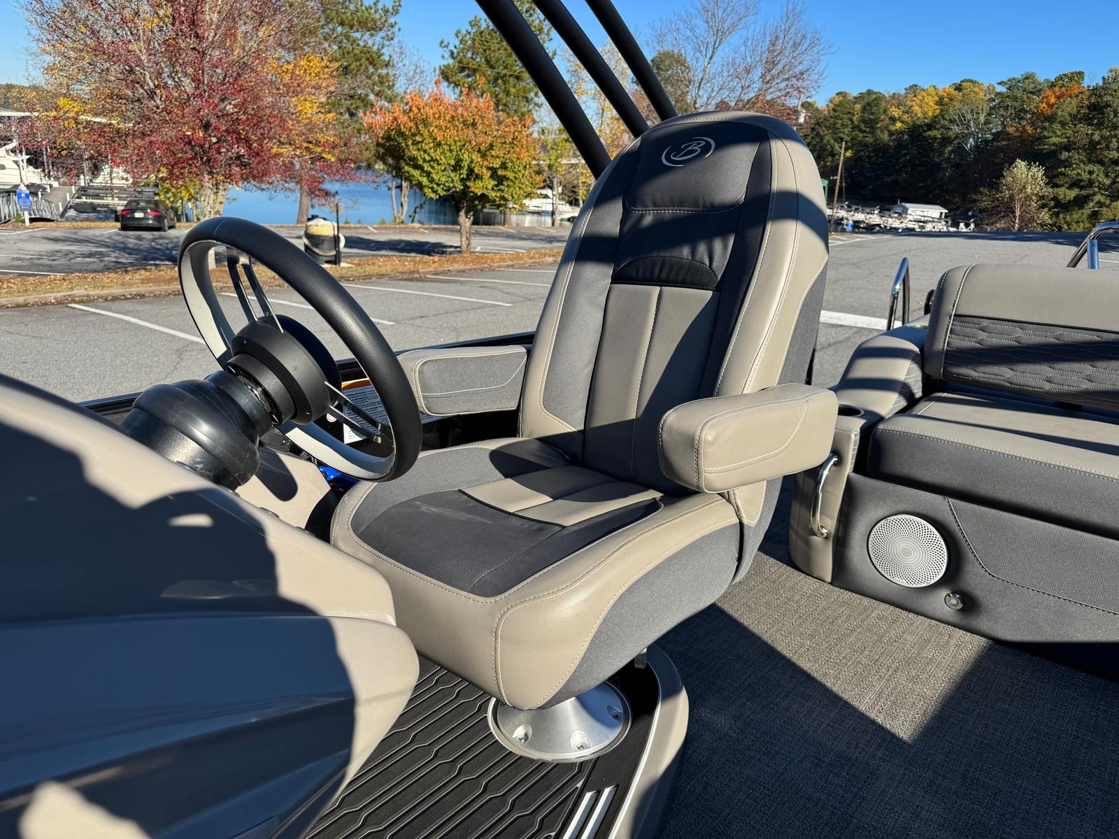 The 2023 Barletta Corsa 23UCA is thoughtfully designed to maximize comfort, convenience, and enjoyment. Its 25-foot length provides ample space for socializing, sunbathing, or simply relaxing with your favorite people. The pontoon’s layout is optimized for versatility, making it easy to transition from a lively party atmosphere to a tranquil retreat. High-quality materials and finishes throughout the boat ensure durability and a premium feel, while the ergonomic seating arrangements offer exceptional comfort for long days on the water. Every detail, from the stylish helm to the spacious deck, is crafted to enhance your boating experience and make every outing memorable.