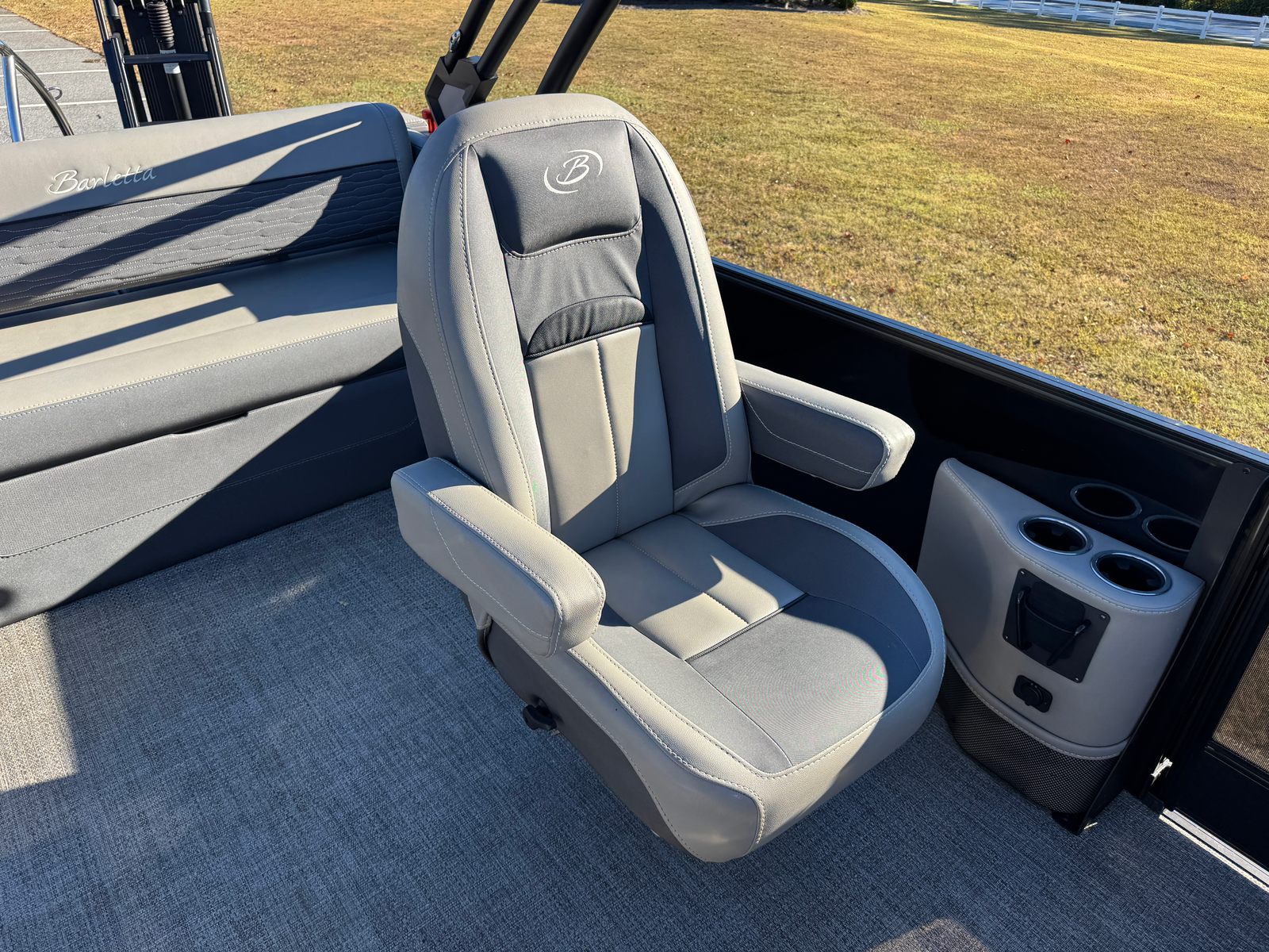 The 2023 Barletta Corsa 23UCA is a 25-foot pontoon that exudes modern elegance and robust construction. As a used pontoon boat, it offers the unique advantage of proven reliability with only 62 engine hours, ensuring you get a vessel that is both gently used and ready for countless more adventures. The Corsa 23UCA’s sleek lines and contemporary design make it a head-turner at any marina, while its spacious layout ensures there is plenty of room for everyone on board. With Barletta’s reputation for quality craftsmanship and attention to detail, this pontoon boat for sale is an exceptional opportunity for those seeking a high-end boating experience without the new-boat price tag.