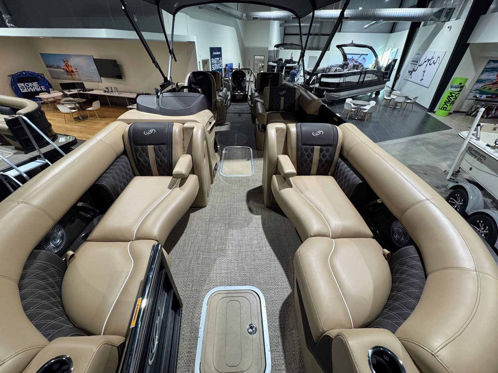 The 2025 Barletta Lusso L23M is a 25.5-foot pontoon that exemplifies modern design and engineering. As a used pontoon boat, it offers the unique advantage of high-end features at a more accessible price point, making it an attractive option for those looking to maximize value without compromising on quality. The Lusso L23M’s spacious layout and elegant lines make it a head-turner at any marina or lake, while its robust construction ensures lasting durability for years of enjoyment.