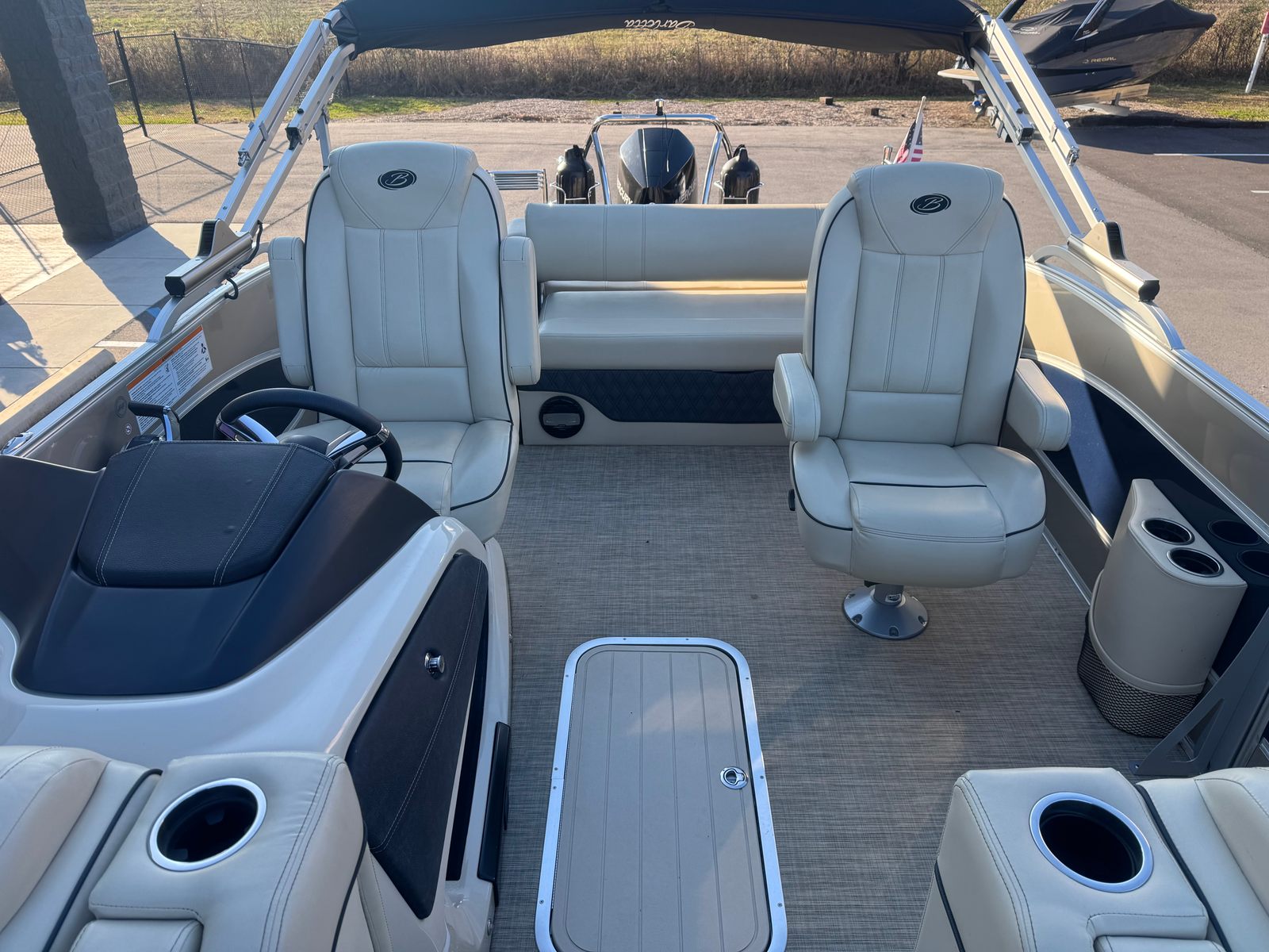Powering the Barletta Lusso L25UC is a single engine with an impressive 300 horsepower. This robust engine ensures that you have all the power you need for smooth cruising, quick acceleration, and effortless handling. Whether you are gliding across calm waters or navigating busier channels, the Lusso L25UC delivers a responsive and exhilarating ride. The combination of a powerful engine and Barletta’s advanced pontoon design means you can enjoy both speed and stability, making every trip memorable.