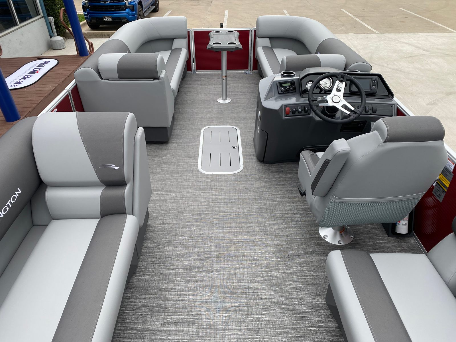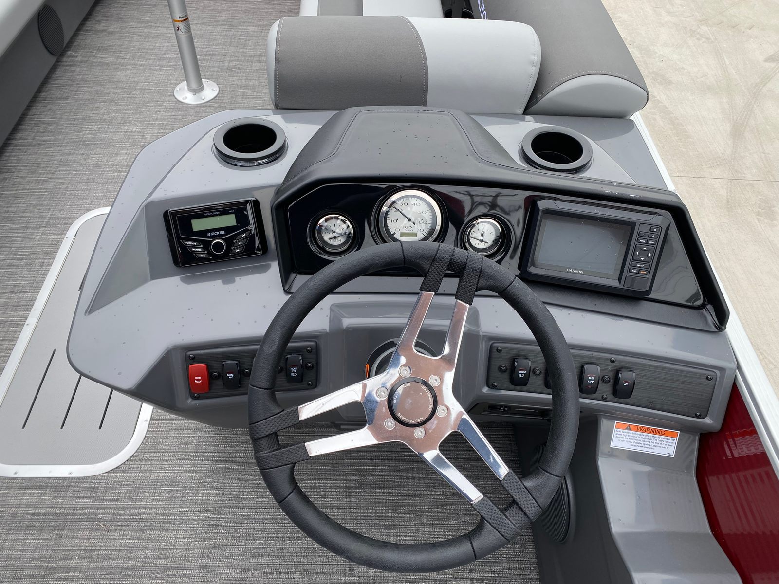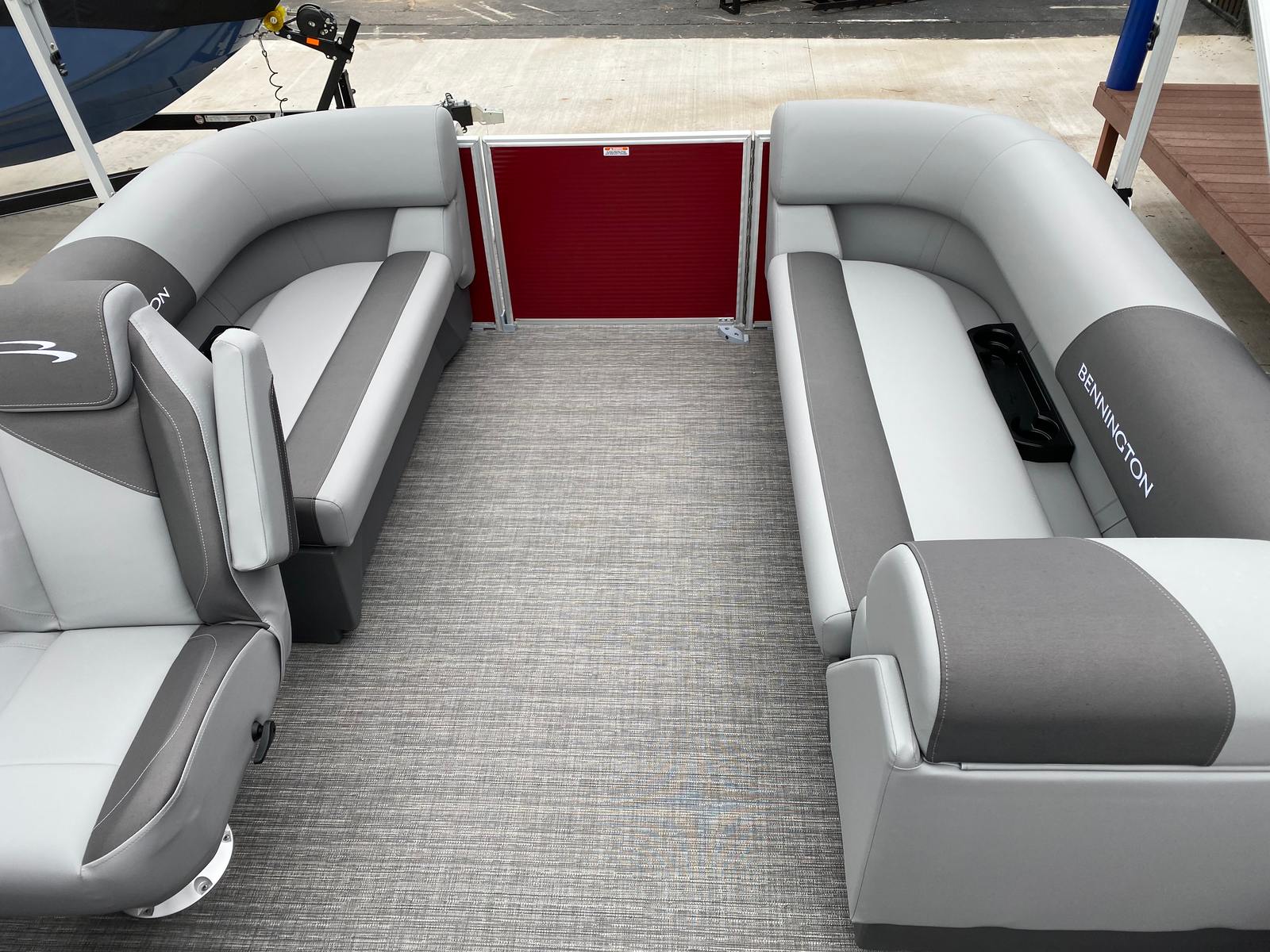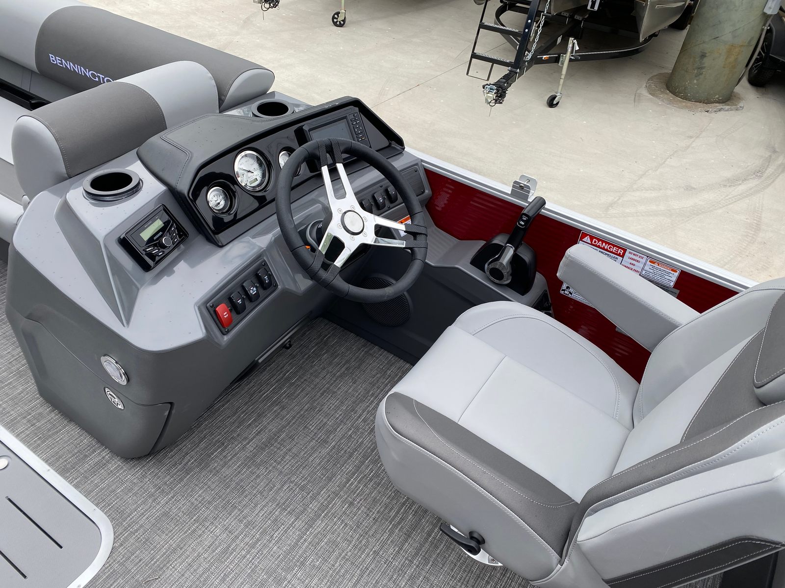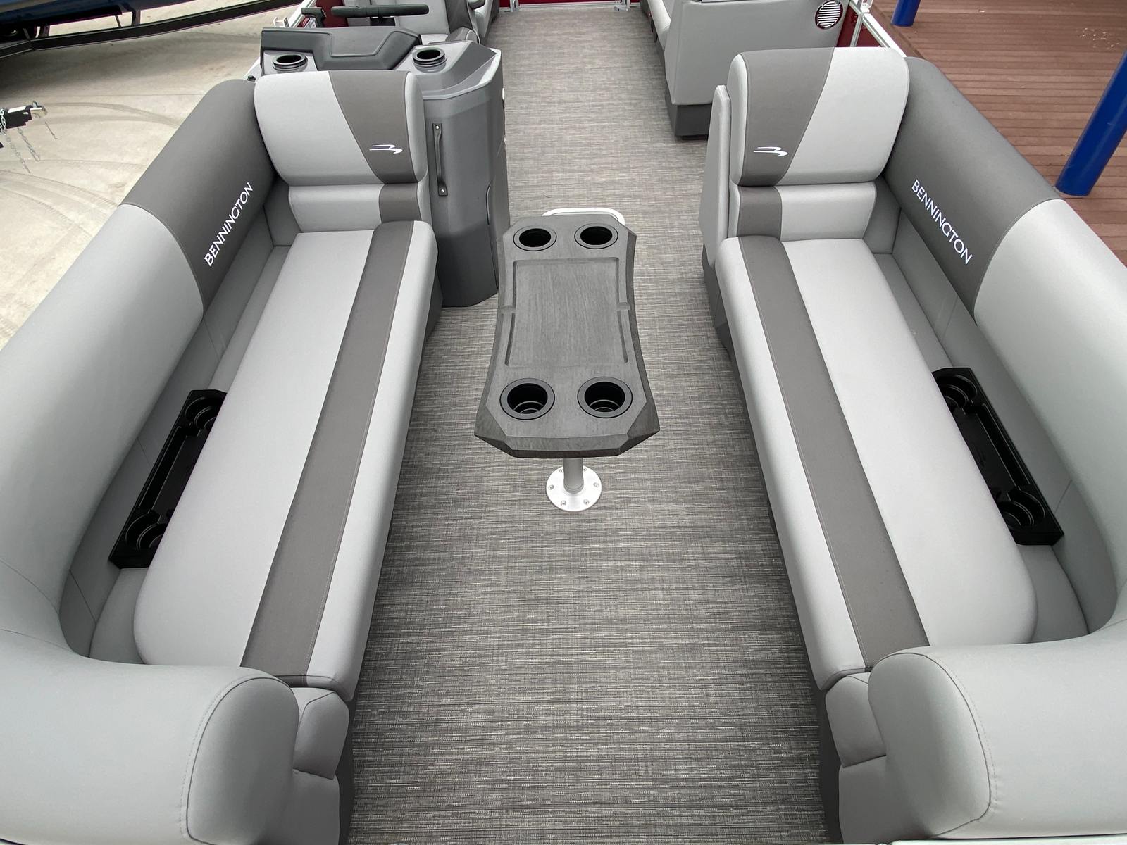 Step aboard the Bennington 20 Svsr SPS and discover a host of special features designed to elevate your boating experience. The boat is equipped with a single battery switch with fuse, ensuring reliable power management and safety. Navigation and fish finding are made effortless with the integrated Garmin Echomap, providing clear and accurate data for confident exploration. The base furniture is adorned with Simtex upholstery, offering plush comfort and durability for long days on the water.Aesthetically, the boat boasts striking Rossa Red panels and matching canvas, complemented by base and accent colors in Shadow Grey and Carbon. The Ironwood dash accent adds a touch of sophistication to the helm, while the Grano Shadow Grey Full flooring provides a stylish and easy-to-clean surface. In-floor storage offers convenient space for stowing gear, water toys, or personal items, keeping the deck clutter-free and organized.