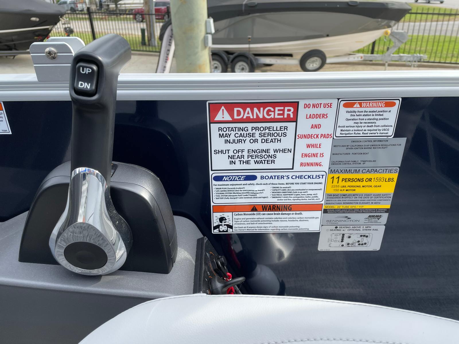 Owning the Bennington 21 SSB SPS means embracing a lifestyle of relaxation, excitement, and connection. The spacious deck provides plenty of room for socializing, sunbathing, or enjoying a picnic on the water. The luxurious seating ensures everyone stays comfortable, whether you are hosting a lively gathering or seeking a peaceful retreat. With its advanced performance features, this pontoon boat is equally suited for leisurely cruises and action-packed adventures.The wireless charger and ample storage options make it easy to keep your essentials organized and accessible, while the underdeck wave shield and windscreen enhance comfort and enjoyment for all on board. The ski tow bar opens up a world of watersports possibilities, from tubing to wakeboarding, ensuring every outing is filled with fun and excitement.