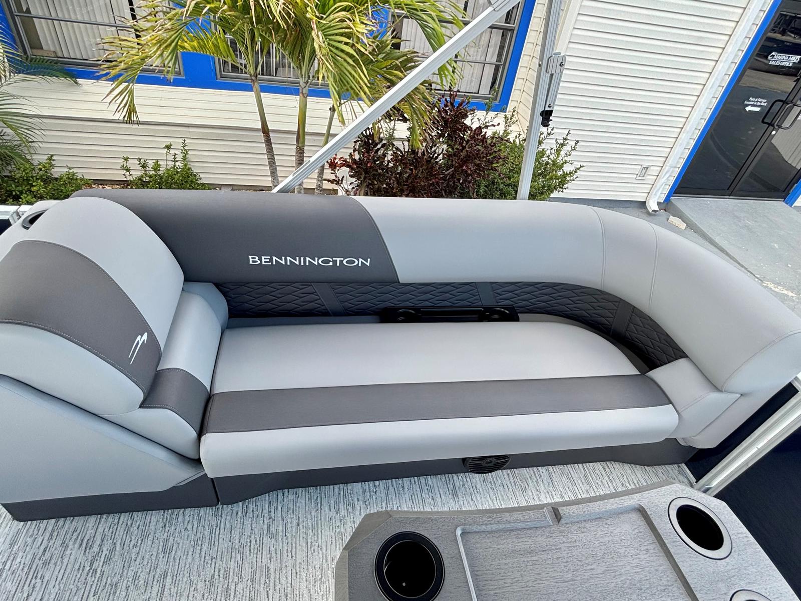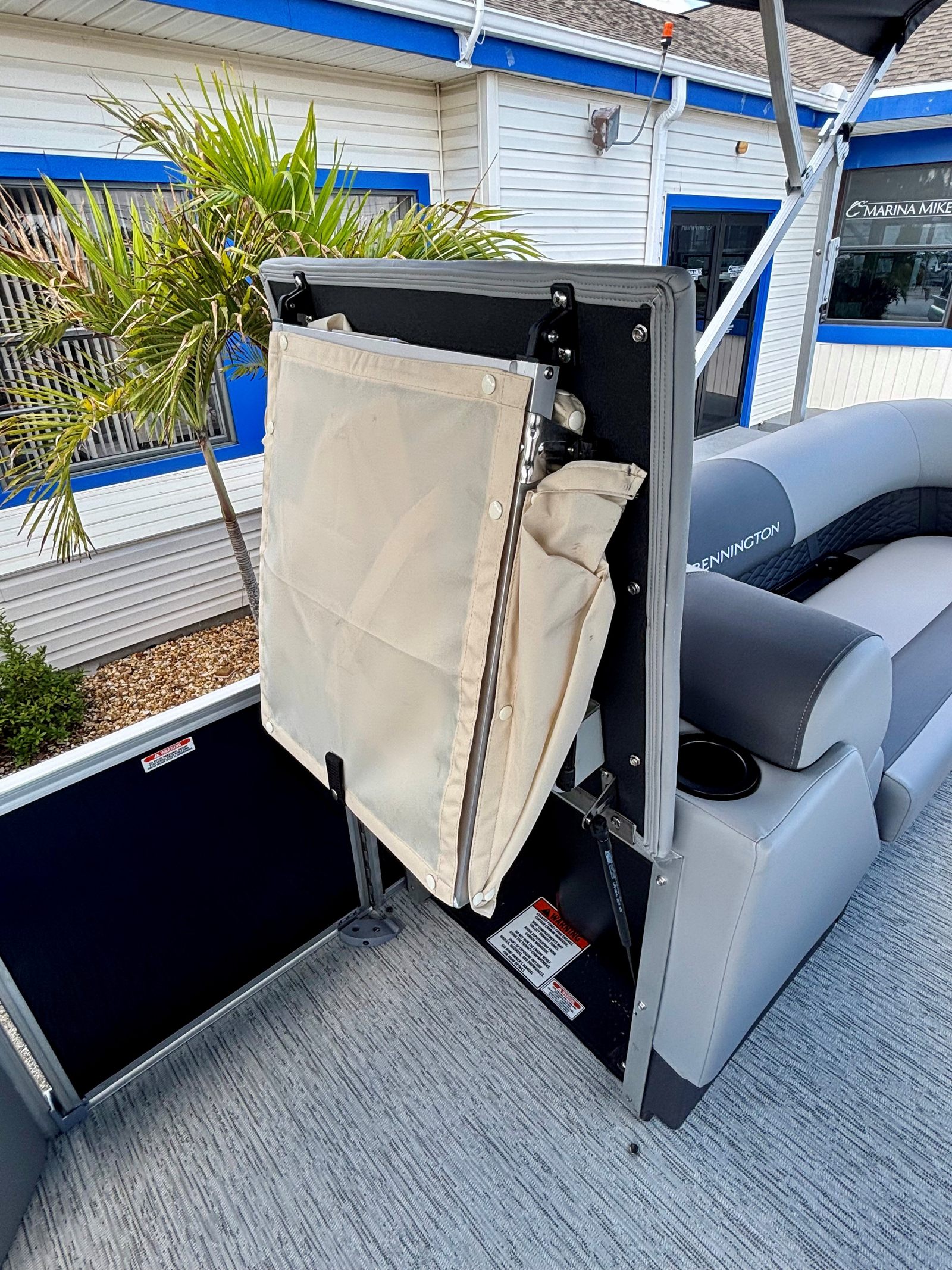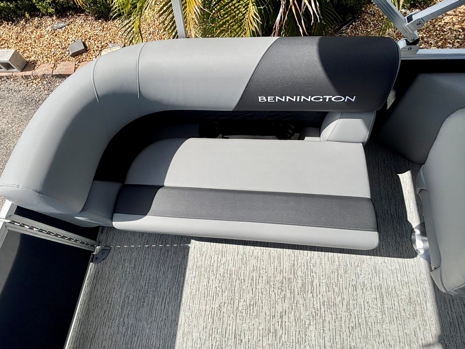 Owning the Bennington 21 SSR SPS pontoon boat means embracing a lifestyle of fun, relaxation, and social connection. The spacious deck layout is perfect for hosting friends and family, offering ample seating and room to move about. The double bimini provides generous shade, making it easy to enjoy the outdoors without worrying about sun exposure. The Lillipad Ladder ensures that everyone can participate in swimming and water activities, adding to the enjoyment and versatility of your outings. The stylish accents and premium materials create an inviting atmosphere, making every trip feel like a luxury getaway. Whether you’re cruising at sunset, anchoring for a picnic, or simply lounging with loved ones, this Bennington boat for sale delivers comfort and excitement in equal measure.