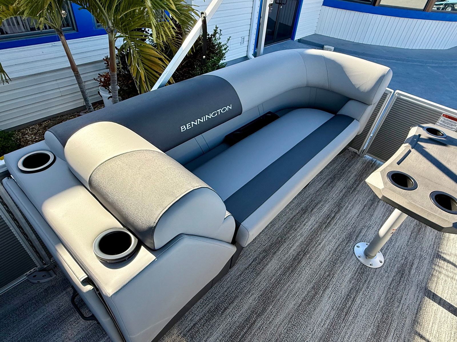 Powering the Bennington 21 SSR SPS is a single, high-performance 150 HP 4 Stroke VMAX SHO 25 IN engine. This Yamaha engine is engineered for reliability, efficiency, and impressive acceleration, making it ideal for both leisurely cruises and more spirited adventures. The Yamaha Mechanical Pre-rig ensures smooth and responsive control, allowing you to navigate with confidence and precision. With 150 horsepower at your command, you’ll enjoy exhilarating rides, quick planing, and the ability to tow water toys or skiers with ease. The combination of power and efficiency makes this pontoon boat a standout performer in its class.