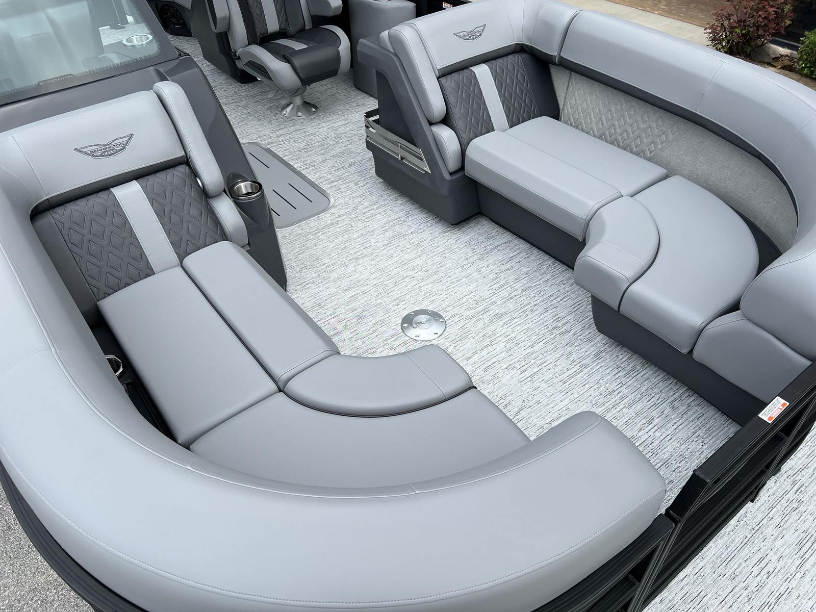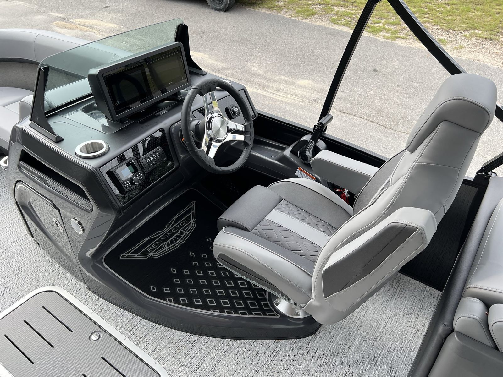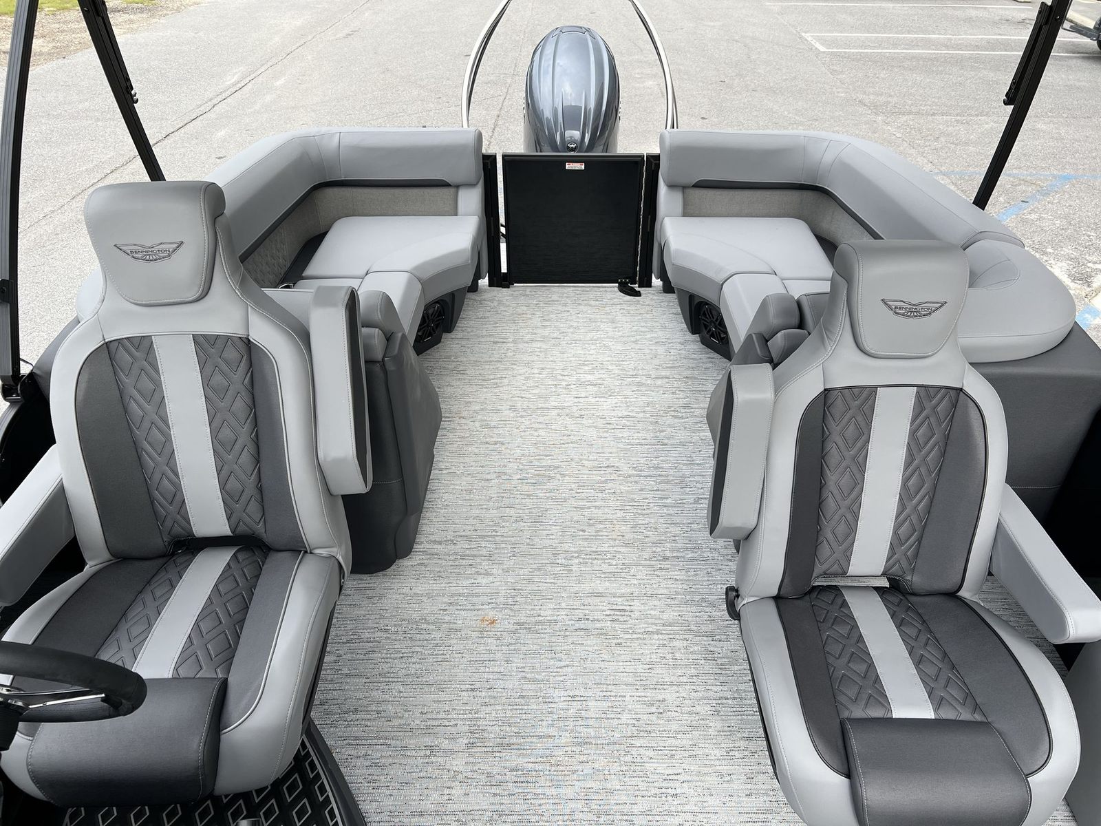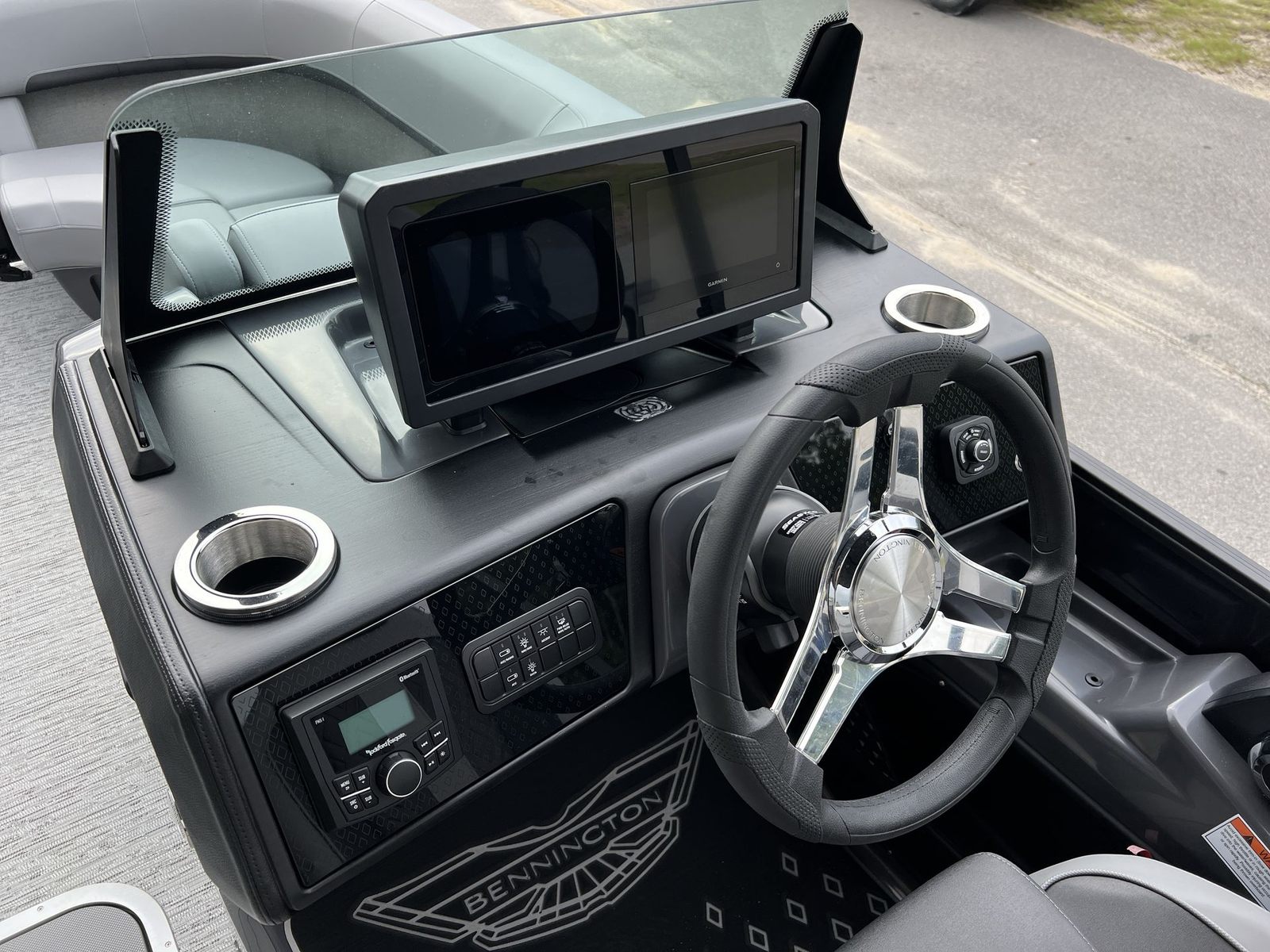 Powering this Bennington pontoon is the Yamaha F200XD engine, renowned for its reliability, efficiency, and smooth operation. With Yamaha Mechanical Pre-Rig – Delete Hydraulic Cylinder, the boat is engineered for responsive handling and precise control, making every cruise effortless and enjoyable. The robust horsepower delivers impressive acceleration and speed, allowing you to glide across the water with confidence, whether you’re heading out for a leisurely day or seeking a bit of excitement. The combination of Bennington’s superior hull design and Yamaha’s advanced engineering ensures a stable, quiet, and fuel-efficient ride, so you can focus on making memories without worry.