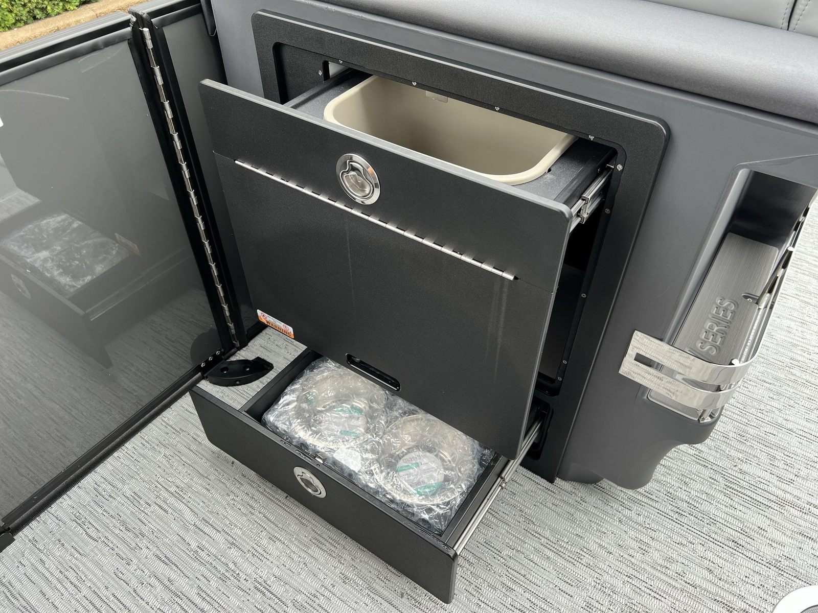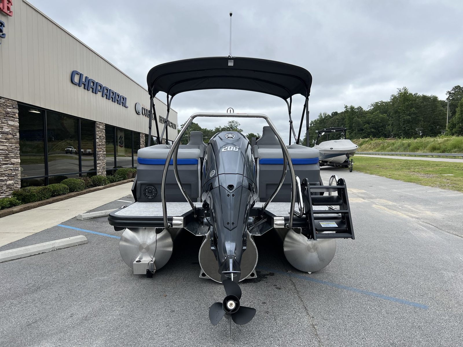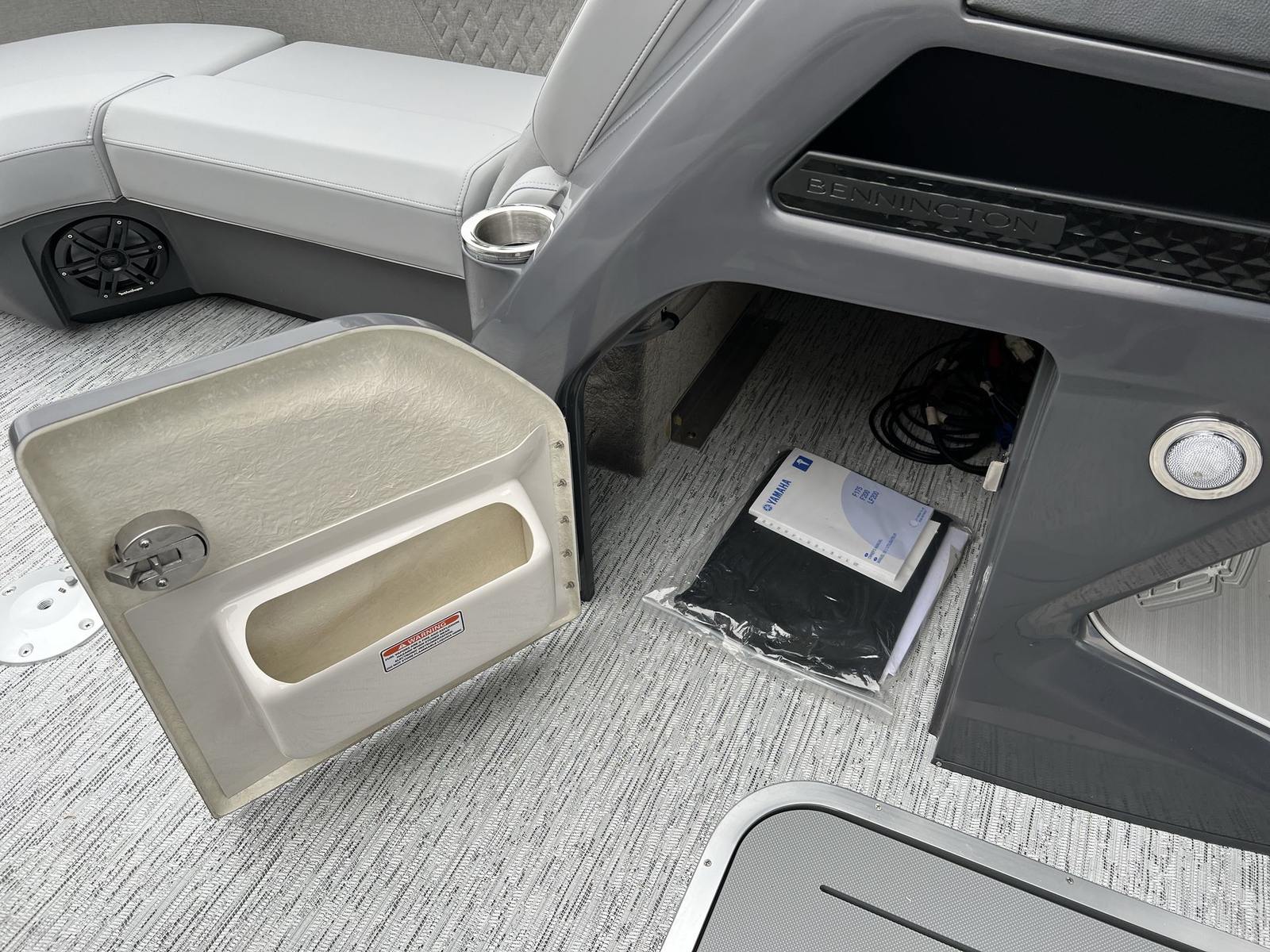 The Bennington 22 MFB SPS is designed with practicality in mind, making boat ownership more convenient and enjoyable. The elevated console offers excellent visibility for docking and navigating, while the efficient Yamaha F200XD engine provides reliable performance and fuel efficiency. The thoughtful lighting features enhance safety during evening cruises, and the spacious layout offers plenty of room for storage, ensuring that all your gear and essentials are easily accessible. Whether you are planning a day of fishing, a sunset cruise, or a weekend getaway, this pontoon boat adapts to your needs with ease.