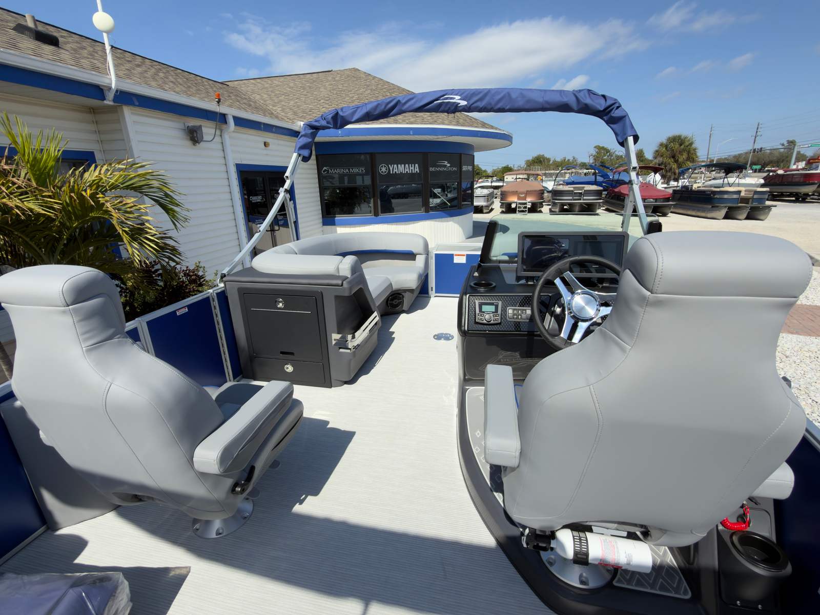 Owning the Bennington 22 MSB SPS means embracing a lifestyle of fun, relaxation, and social connection. The spacious deck layout provides plenty of room for family and friends to spread out, lounge, and enjoy the scenery. The comfortable seating and thoughtful design make it easy to host gatherings, celebrate special occasions, or simply unwind after a busy week. The pontoon’s stable platform is perfect for swimming, sunbathing, or enjoying a picnic on the water, while the powerful engine opens up opportunities for tubing, wakeboarding, and other water sports.The elevated console not only enhances visibility and control but also adds a sense of luxury to your boating experience. The stylish finishes and premium materials create an inviting environment that you’ll be proud to share with guests. With the double curved Bimini, you can stay cool and protected even on the hottest days, ensuring everyone stays comfortable from sunrise to sunset.