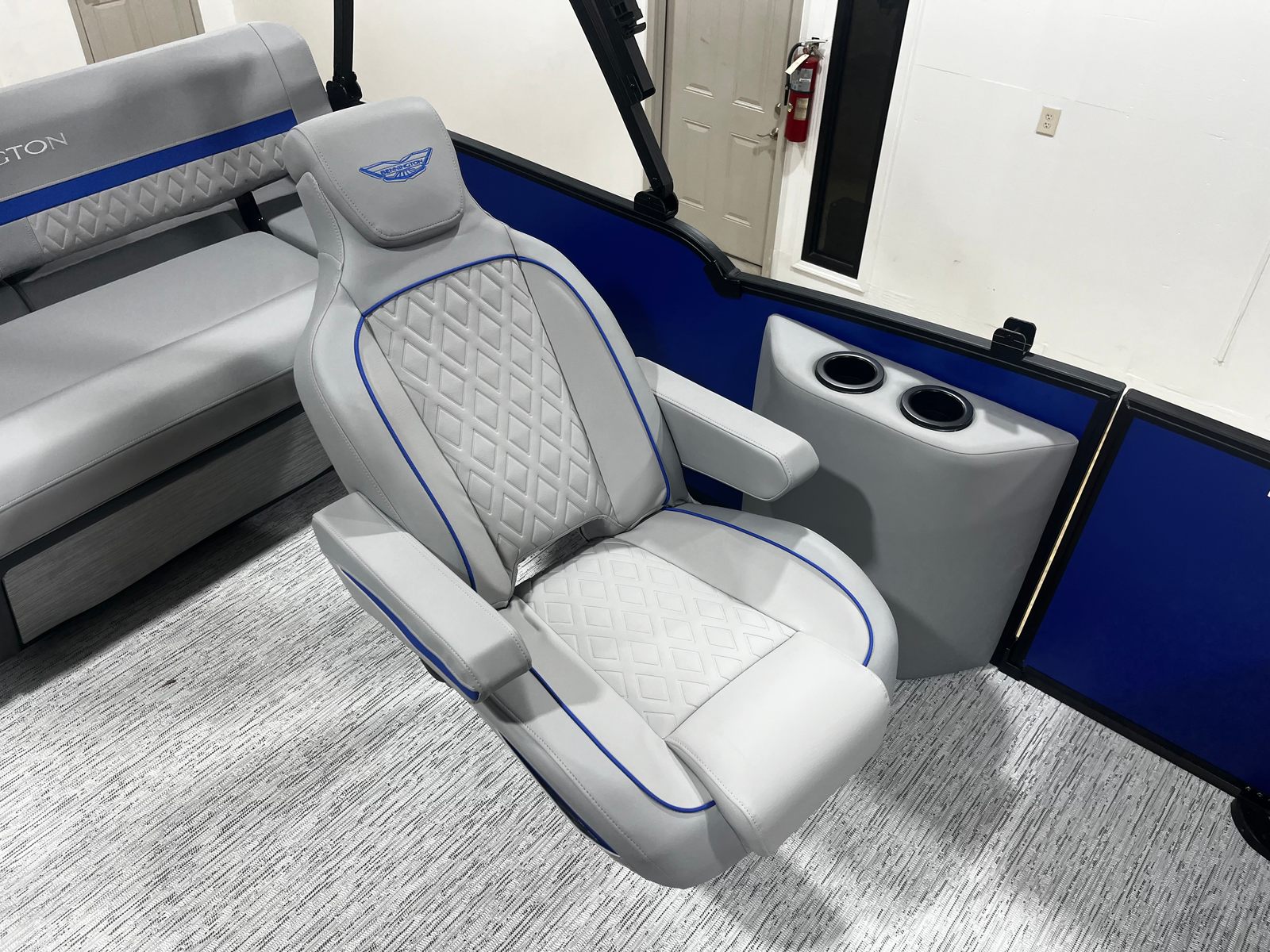 Step aboard and discover a world of premium features designed to maximize your enjoyment. The Zebrawood Matte Slate finish adds a touch of modern elegance, complemented by the Accent - Smooth Gemini Black detailing for a sleek, sophisticated look. The Black Rub Rail Insert not only enhances the boat’s aesthetics but also provides added protection along the hull.Navigation and control are effortless thanks to the 9" Garmin Multi-Function Display, offering intuitive access to vital information and entertainment options. The Premium, Retractable Keeper Rail ensures safety and convenience, while the Bow Pop-Up Cleats make docking and securing your pontoon a breeze. Shade and comfort are always within reach with the Bimini - Curved M/LXS No Light Blk, allowing you to relax in style even on the sunniest days.