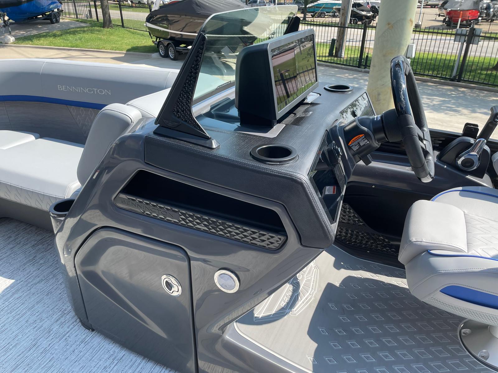 Owning the Bennington 22 MSB SPS pontoon boat means embracing a lifestyle of fun, relaxation, and social connection. The spacious deck layout is perfect for hosting gatherings, sharing meals, or simply lounging in the sun. With its luxurious seating and thoughtful lighting, you’ll enjoy unmatched comfort whether you’re cruising, anchored, or docked. The elevated console and premium materials create an upscale environment that rivals even the finest waterfront retreats.This pontoon boat is designed for those who appreciate the finer things in life, offering a perfect blend of style and functionality. The advanced lighting features set the mood for evening adventures, while the powerful Yamaha engine ensures you’re always ready for action. Every detail, from the Zebrawood accents to the Midnight Black canvas, reflects Bennington’s commitment to quality and innovation.