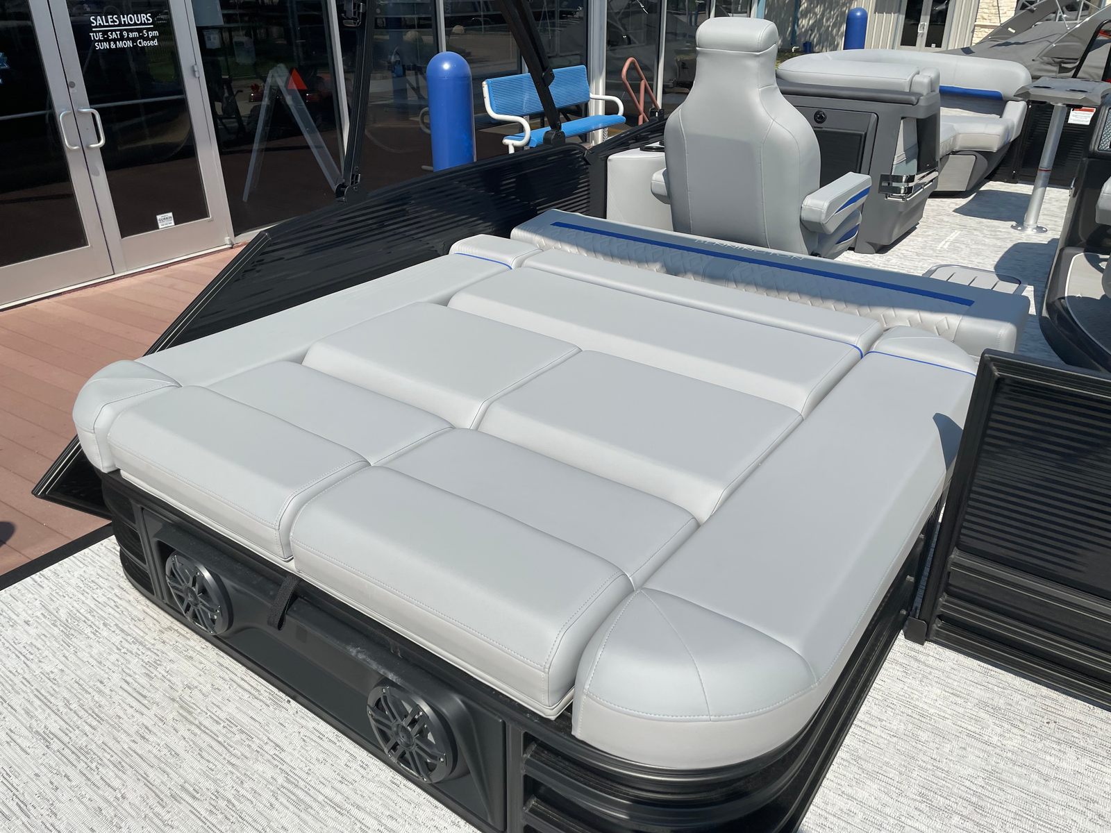 The Bennington 22 MSB SPS is a brand-new pontoon boat, measuring an impressive 24.25 feet in length. This spacious vessel is expertly crafted to provide ample room for family, friends, and all your favorite activities on the water. With its sleek lines, modern profile, and attention to detail, this Bennington boat for sale stands out as a true leader in its class. Whether you’re cruising along the shoreline, anchoring for a swim, or hosting a sunset gathering, the 22 MSB SPS offers the perfect setting for unforgettable moments.