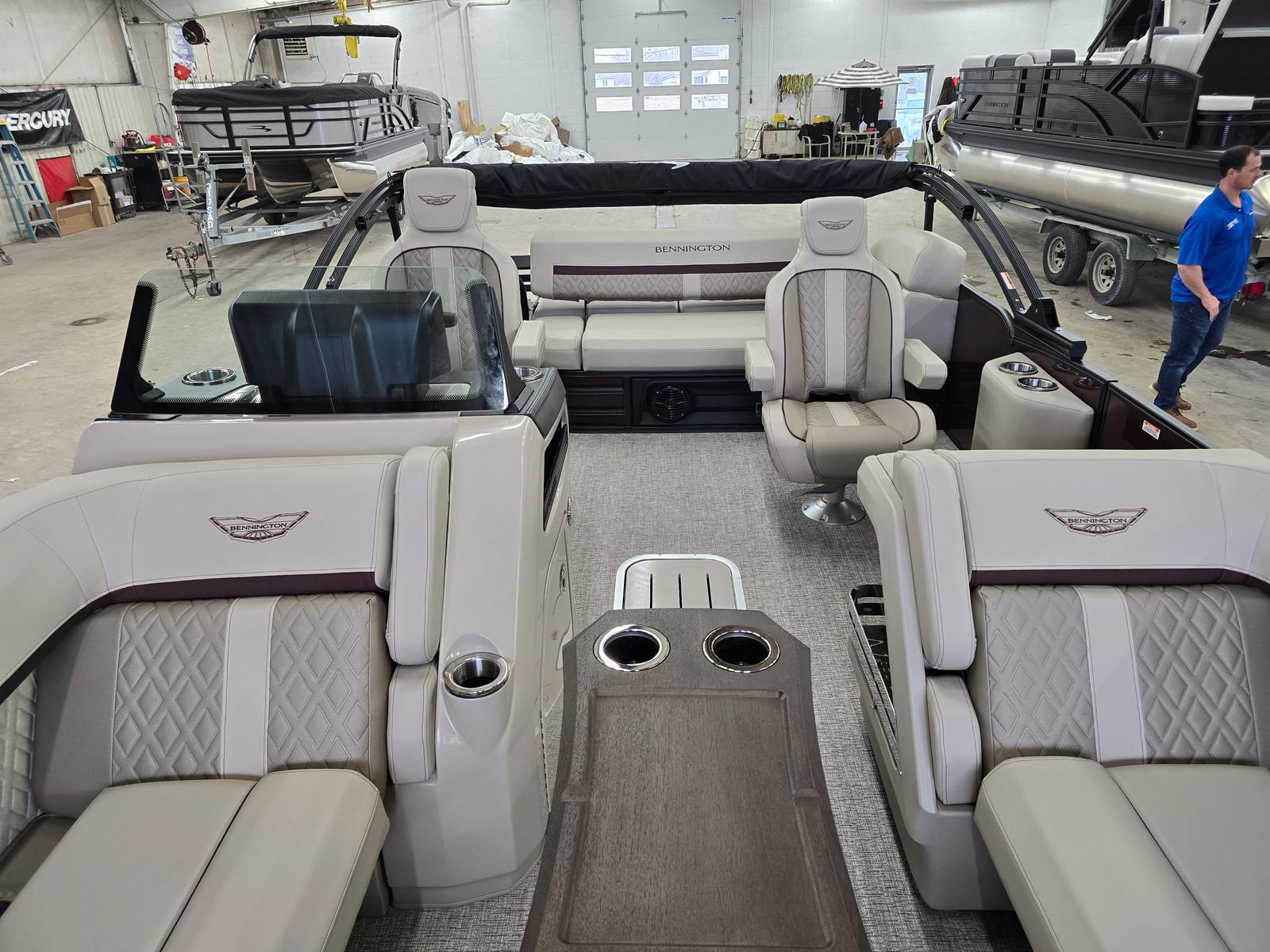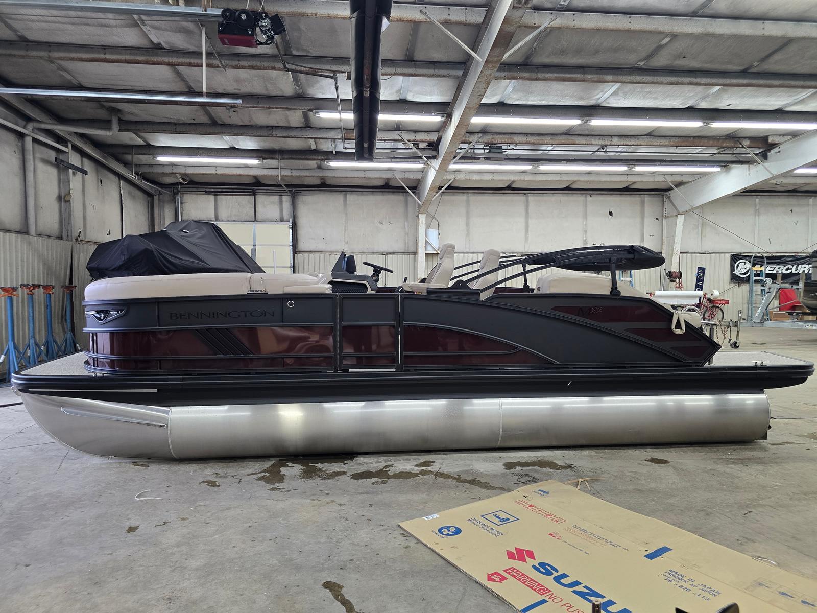 The 2026 Bennington 22 MSB SPS pontoon is a standout choice for anyone seeking a new pontoon boat for sale that delivers on style, performance, and versatility. With its powerful Suzuki DF150ATXSS5 engine, striking Smooth Sunset Red and Satin Black accents, luxurious Dolce Veneto interior, and innovative features like the electric power top Bimini and elevated console, this Bennington boat for sale is designed to impress.Experience the perfect blend of comfort, convenience, and excitement every time you hit the water. Don’t miss your chance to own this exceptional pontoon boat – contact your local dealer today to learn more and schedule a viewing. Your next adventure awaits with the Bennington 22 MSB SPS!