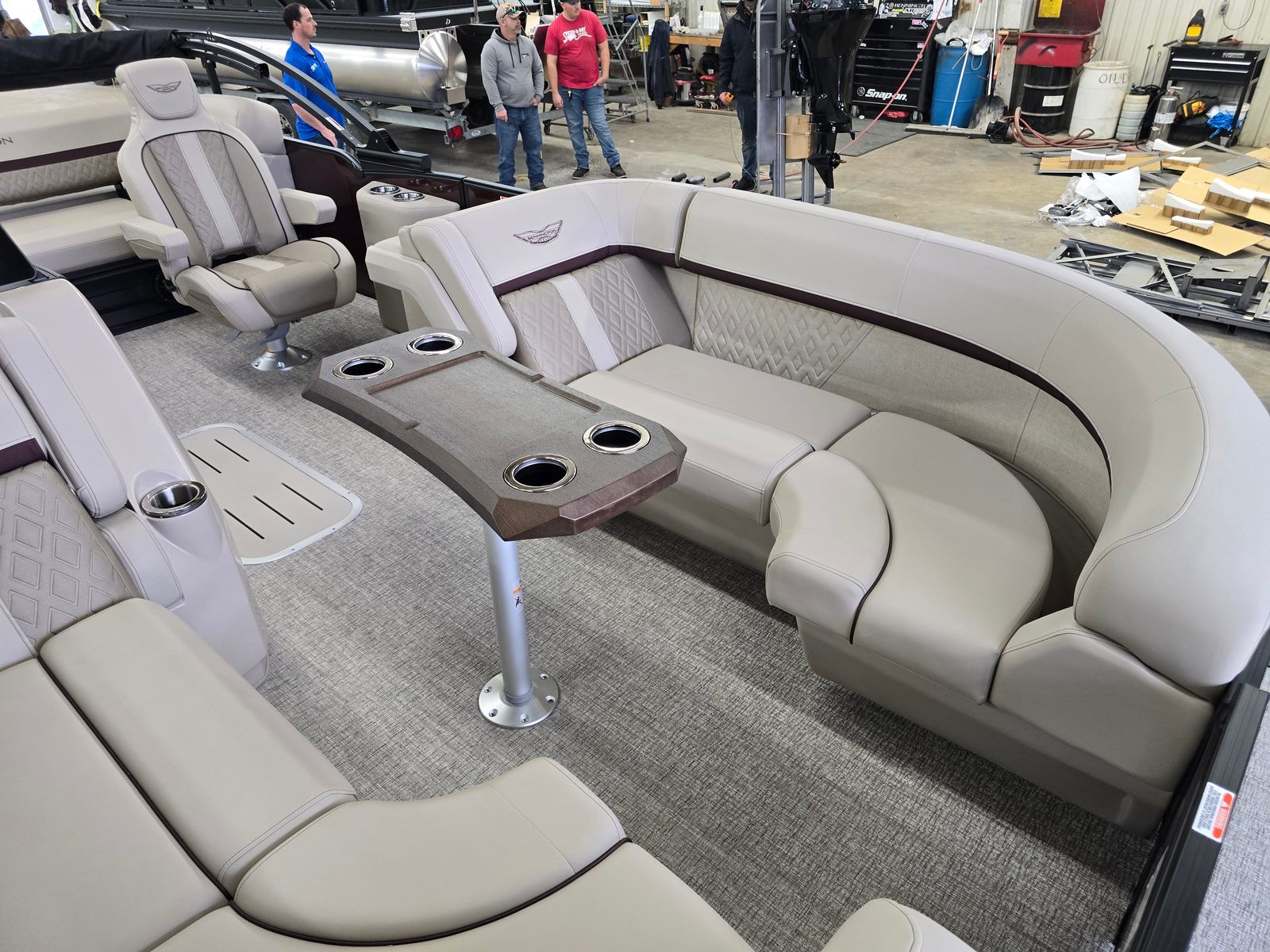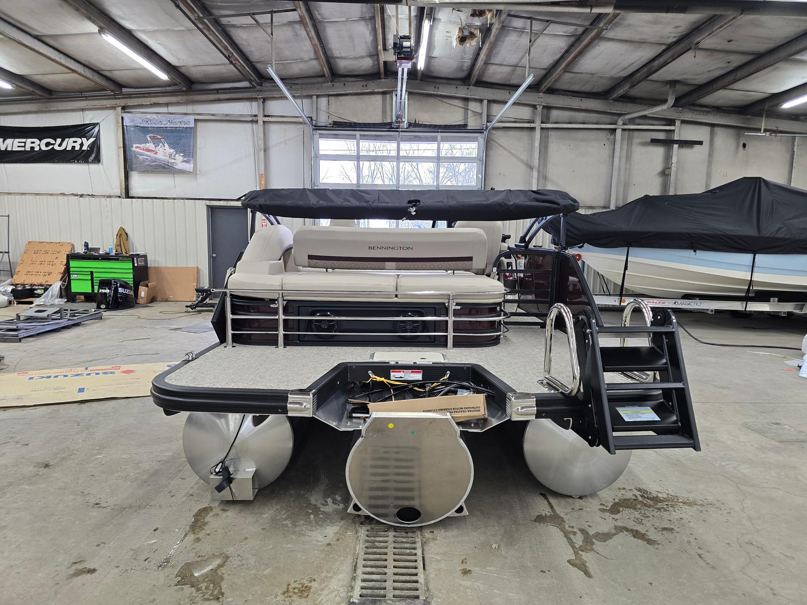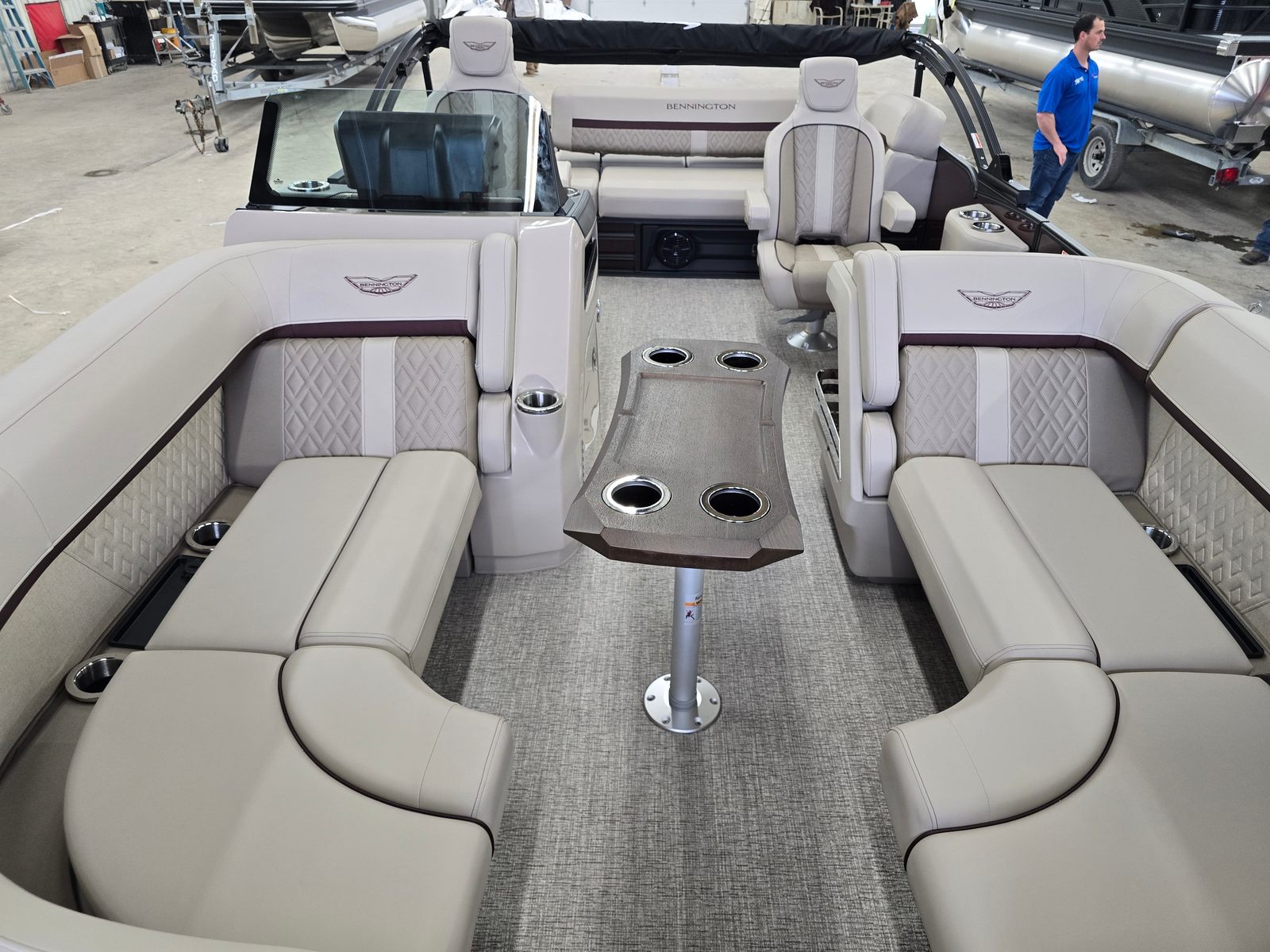 Owning the Bennington 22 MSB SPS pontoon means embracing a lifestyle of relaxation, fun, and social connection. The spacious layout is perfect for hosting gatherings, whether you’re sharing a meal, playing games, or simply soaking up the sun. The plush Dolce Veneto seating invites you to unwind in comfort, while the elevated console ensures the captain enjoys both style and superior control.The electric power top Bimini makes it easy to adapt to changing weather, providing shade and protection when you need it most. The removable flag pole with American flag adds a festive touch to your adventures, making every outing feel like a celebration. With its smooth handling and powerful engine, this Bennington boat for sale is designed to create lasting memories on the water.