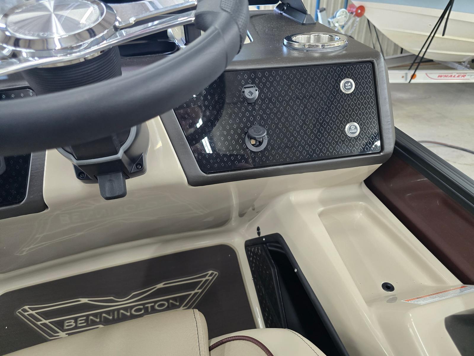 The Bennington 22 MSB SPS pontoon is as practical as it is enjoyable. Its generous deck space offers plenty of room for coolers, gear, and water toys, making it easy to prepare for a day of adventure. The single battery switch with fuse simplifies power management, while the water fuel separator ensures your engine runs smoothly and efficiently.Docking and maneuvering are a breeze thanks to the responsive Suzuki engine and thoughtfully designed controls. Whether you’re navigating busy marinas or exploring quiet coves, this pontoon boat offers the agility and ease of use that make every trip enjoyable. The elevated console provides excellent visibility, enhancing safety and confidence on the water.