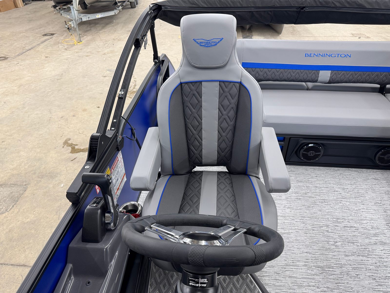 The 2026 Bennington 22 MSB SPS is a 24.25-foot pontoon that embodies the renowned craftsmanship and innovation that Bennington is known for. With its sleek profile and eye-catching color scheme, this Bennington boat for sale is sure to turn heads at the marina and on the open water. The smooth matte Luminous Blue panels, accented by Smooth Gemini Black, create a modern and sophisticated look, while the Graphite Veneto and Luminous Blue Simtex interior accents add a touch of elegance and comfort to every journey.
