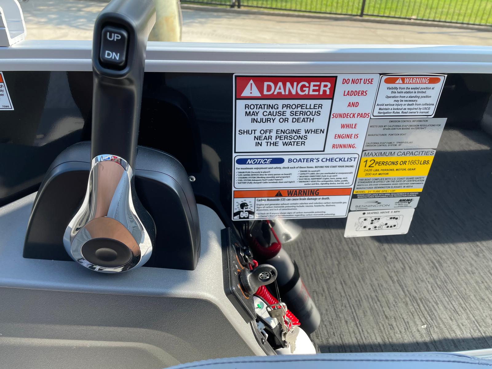 Powering the Bennington 22 SS SPS is a robust 150 HP 4 Stroke Mechanical engine with an integrated hydraulic cylinder and a 25-inch shaft. This setup ensures smooth, responsive handling and reliable performance, whether you’re gliding across calm waters or tackling choppier conditions. The Yamaha Mechanical Pre-Rig – Delete Hydraulic Cylinder configuration further enhances the boat’s efficiency and ease of operation, making it a breeze to maneuver and control.With its single-engine design, the Bennington 22 SS SPS strikes the perfect balance between power and fuel efficiency. The 150 horsepower engine delivers impressive acceleration and speed, allowing you to reach your favorite destinations quickly and effortlessly. Whether you’re towing water toys with the included 54-inch aluminum ski pylon or enjoying a relaxing cruise, this pontoon boat offers the versatility and performance you need for a wide range of activities.