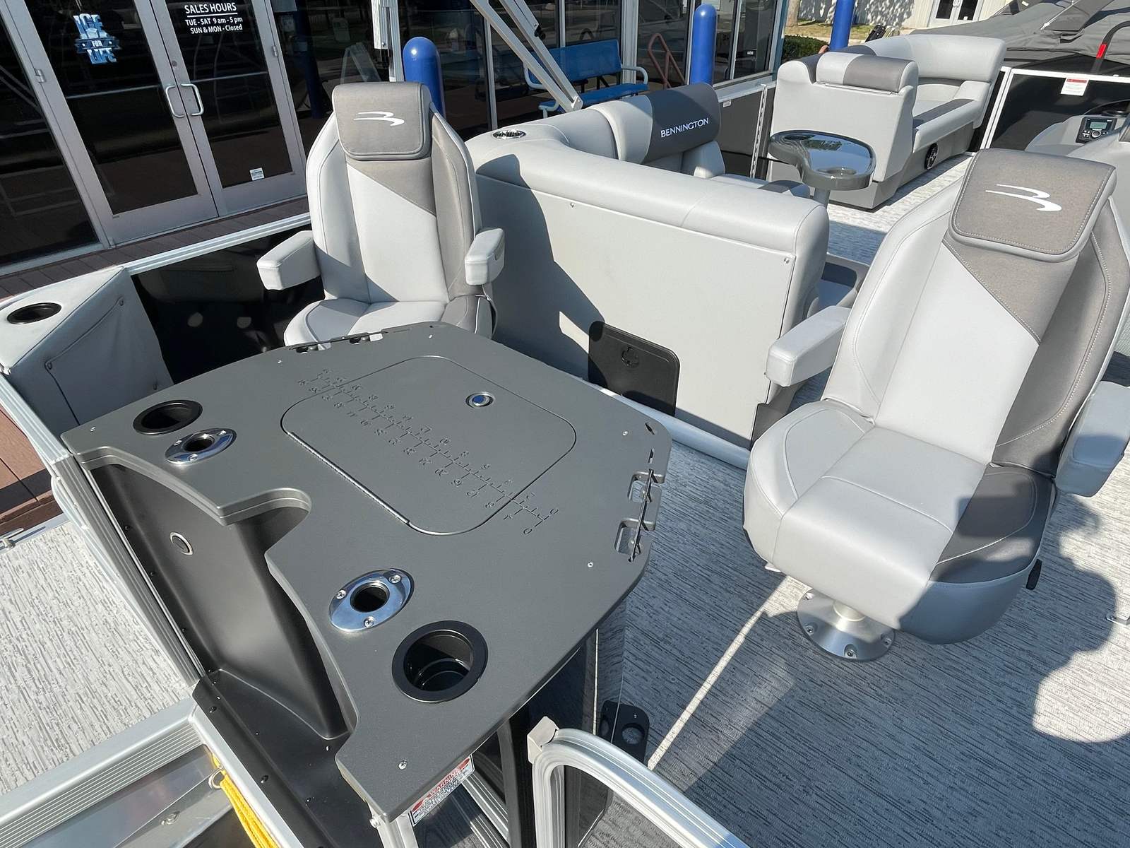 In addition to its recreational benefits, the Bennington 22 SS SPS Pontoon offers a range of practical features that make ownership a pleasure. The boat’s efficient engine and streamlined design contribute to excellent fuel economy, helping you spend more time on the water and less at the pump. The intuitive controls and responsive handling make docking and maneuvering simple, even for novice boaters.Ample storage space ensures that you can bring along all your essentials, from water sports equipment to picnic supplies. The durable construction and premium materials are built to withstand the rigors of regular use, providing peace of mind and long-lasting value. Whether you’re planning a day trip or an extended outing, this pontoon boat is equipped to meet your needs.