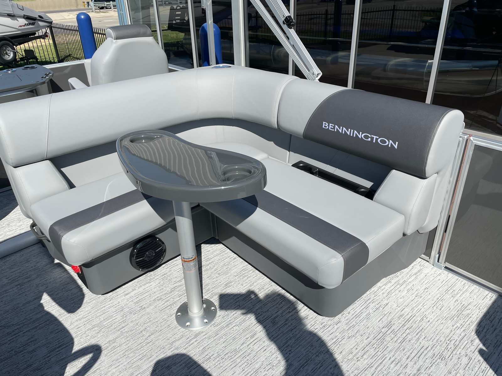 This Bennington pontoon is loaded with features designed to enhance your boating experience. The Serene Soft Touch Vinyl with Simtex accents provides plush, durable seating that invites you to relax in style. The Shadow Grey and Carbon base and accent colors create a modern, upscale atmosphere, while the Ironwood dash accent adds a touch of elegance to the helm. The windscreen offers protection from the elements, ensuring a comfortable ride in varying conditions.The extended aft deck is perfect for lounging, socializing, or preparing for water activities, while the 54-inch aluminum ski pylon is ready for action whenever you are. The single switch battery system simplifies power management, giving you peace of mind and convenience during your outings. Every detail of the Bennington 22 SS SPS is crafted to deliver a premium experience, making it a standout among pontoon boats for sale.