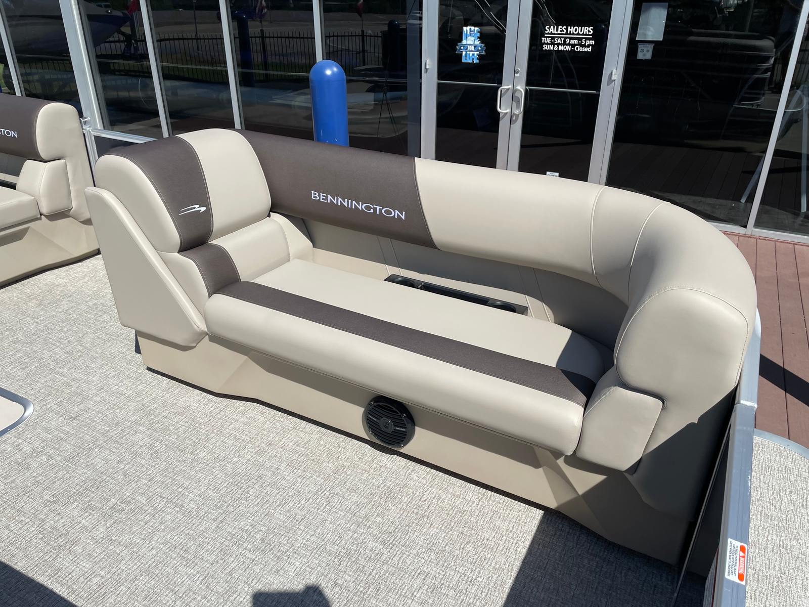 Owning the Bennington 22 SS SPS pontoon means enjoying the ultimate in comfort, style, and versatility. The spacious layout provides plenty of room for socializing, sunbathing, or enjoying a picnic on the water. The premium seating materials ensure that every passenger can relax in luxury, while the thoughtful design details create an inviting atmosphere for gatherings of all sizes. Whether you are hosting a family outing, celebrating with friends, or simply unwinding after a long week, this pontoon offers the perfect setting for making memories.