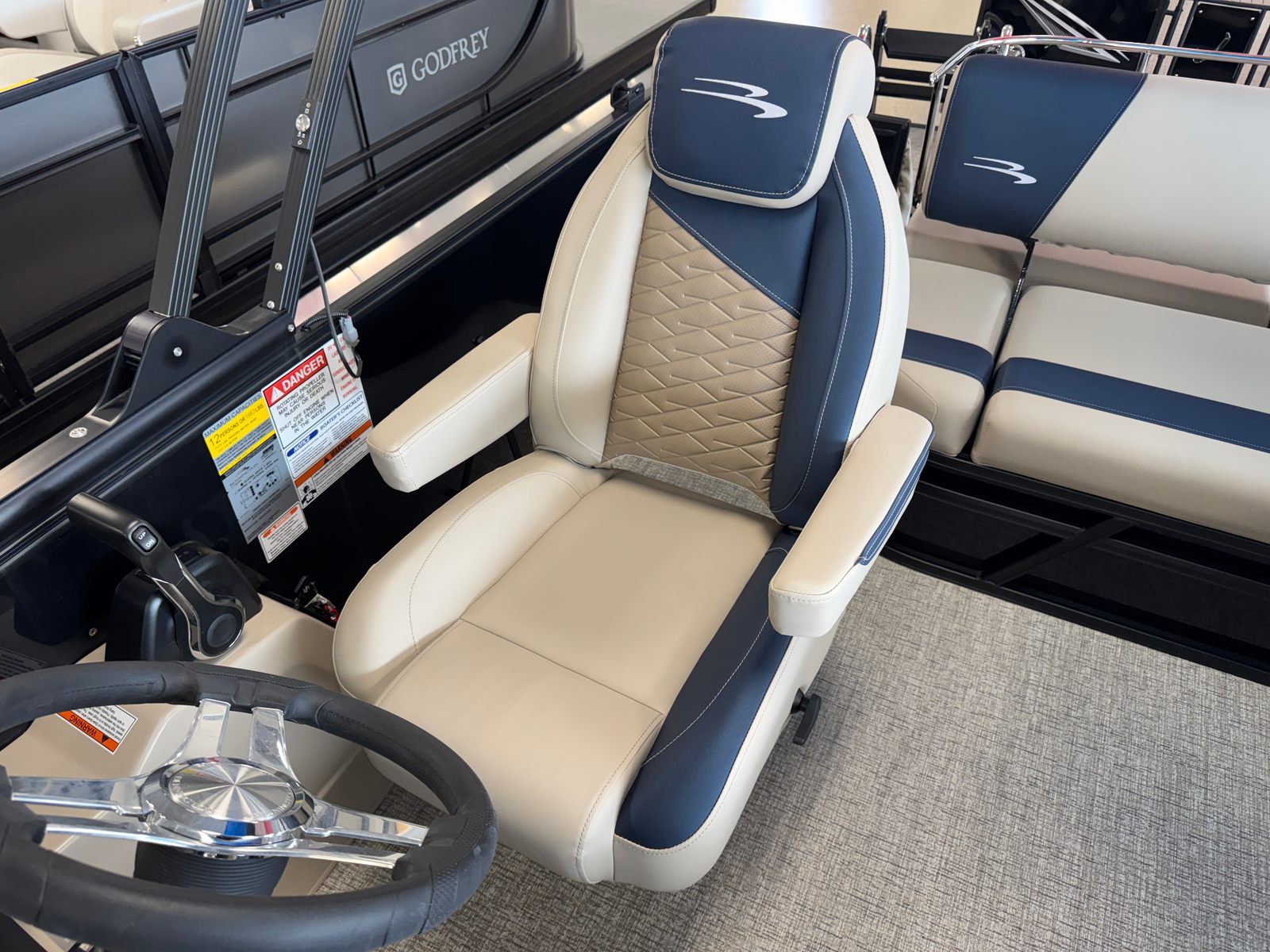 Owning a Bennington 22 SSB SPS pontoon boat means unlocking a world of fun and relaxation. The spacious deck layout is perfect for socializing, allowing you to host gatherings, enjoy meals, or simply lounge in comfort. The plush seating and thoughtful design create an inviting atmosphere, making every outing feel like a special occasion. Whether you’re soaking up the sun, taking a refreshing swim, or enjoying a sunset cruise, this pontoon boat offers the ideal setting for making memories with family and friends.The advanced engine and fuel systems ensure that your time on the water is worry-free, with reliable performance and efficient operation. The electric power top makes it easy to adjust your shade on the fly, so you can stay comfortable no matter the weather. With its stylish accents and premium materials, the Bennington 22 SSB SPS is as much a pleasure to look at as it is to own.