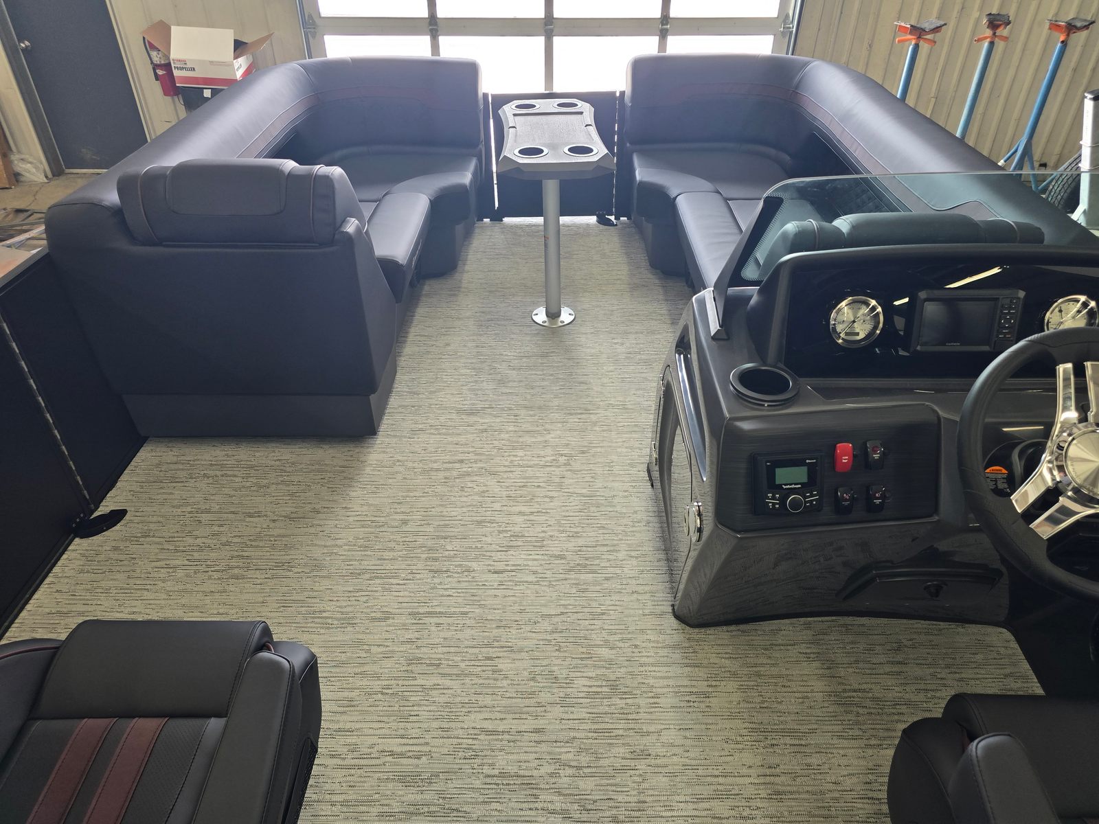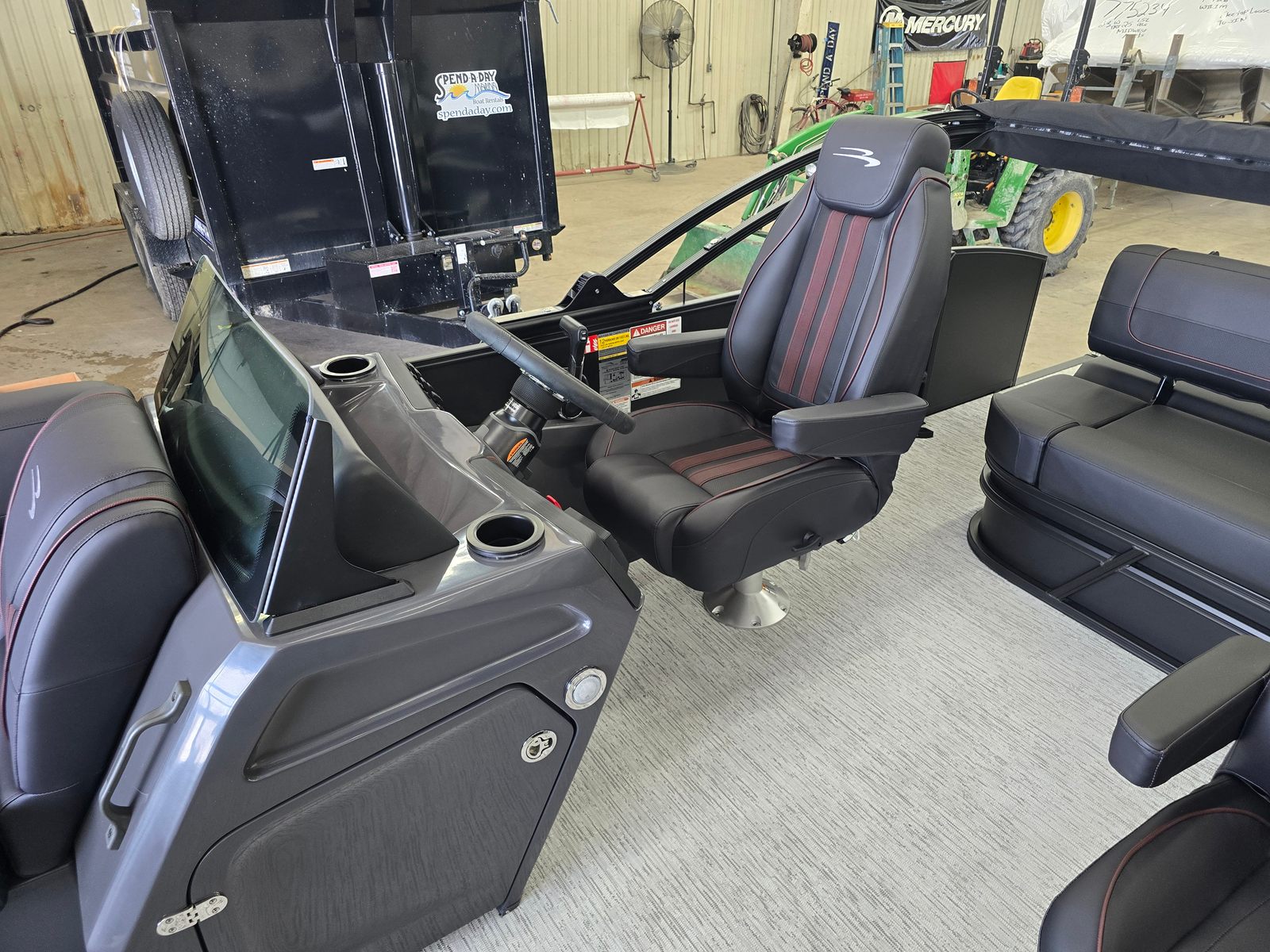 The Bennington 22 SSB SPS is loaded with features that enhance both its functionality and visual appeal. The single switch battery system provides reliable power management, giving you peace of mind during extended trips. The Blackout Logos and Blackout Luxe Package add a touch of sophistication and modern flair, making this pontoon a true head-turner wherever you go.For those who appreciate comfort and style, the interior accent in Sunset Red Simtex and the smooth Sunset Red accent create a warm and inviting atmosphere. The Ironwood Dash Accent adds a touch of elegance to the helm, while the canvas in Midnight Black offers both protection and a sleek look. The Bimini - Electric Power Top Curved Analog S Blk provides effortless shade and shelter, allowing you to enjoy the outdoors in comfort regardless of the weather.