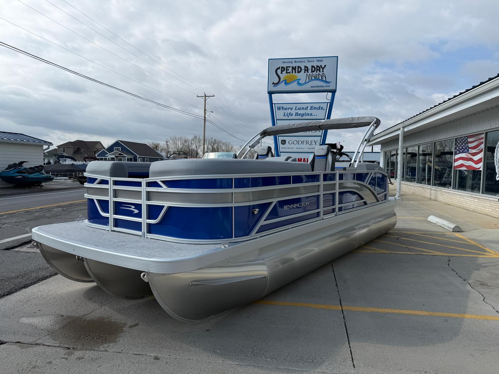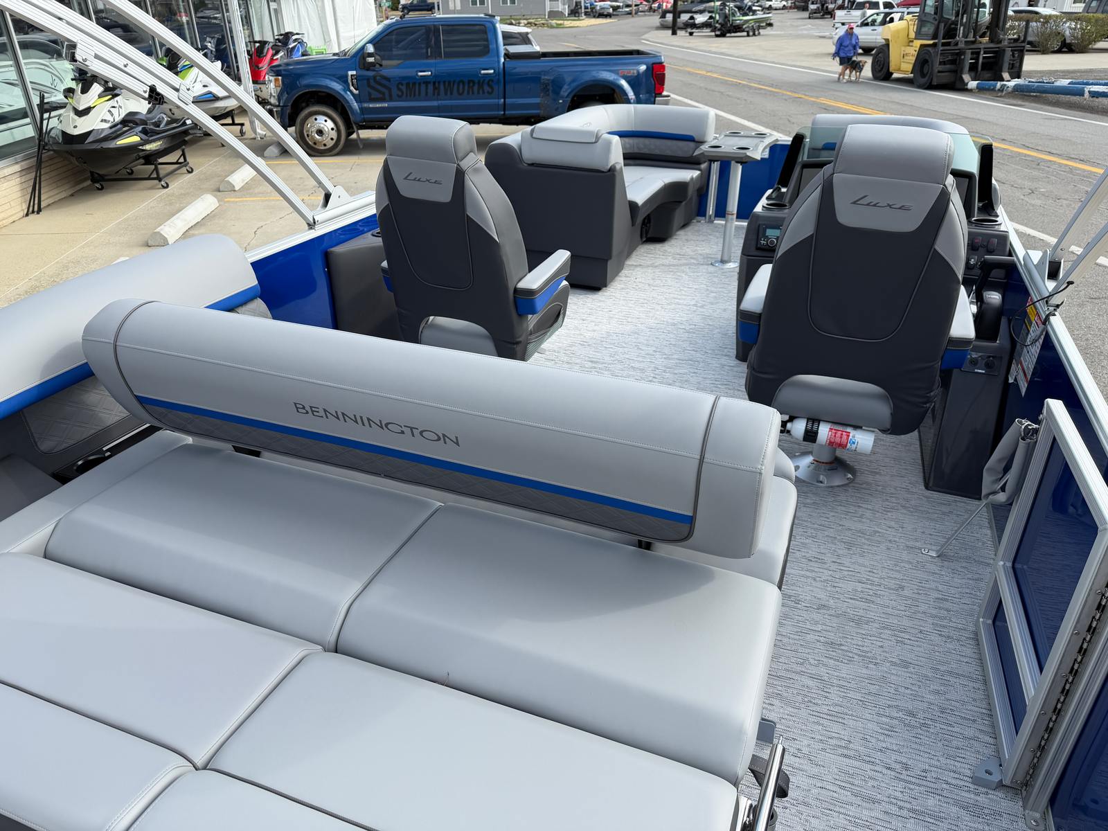 Owning the Bennington 22 SSB SPS pontoon means embracing a lifestyle of fun, relaxation, and adventure. The spacious layout provides plenty of room for family and friends to gather, whether you’re hosting a sunset cruise or enjoying a day of swimming and sunbathing. The plush seating and stylish interior accents create a welcoming atmosphere, while the extended aft deck offers additional space for activities and easy access to the water.The ski tow bar opens up a world of recreational possibilities, from water skiing to tubing, ensuring everyone onboard can join in the excitement. The smooth metallic finishes and luminous blue accents not only look stunning but also reflect Bennington’s commitment to quality and innovation. With this pontoon boat, every outing becomes an opportunity to create lasting memories with those you care about most.