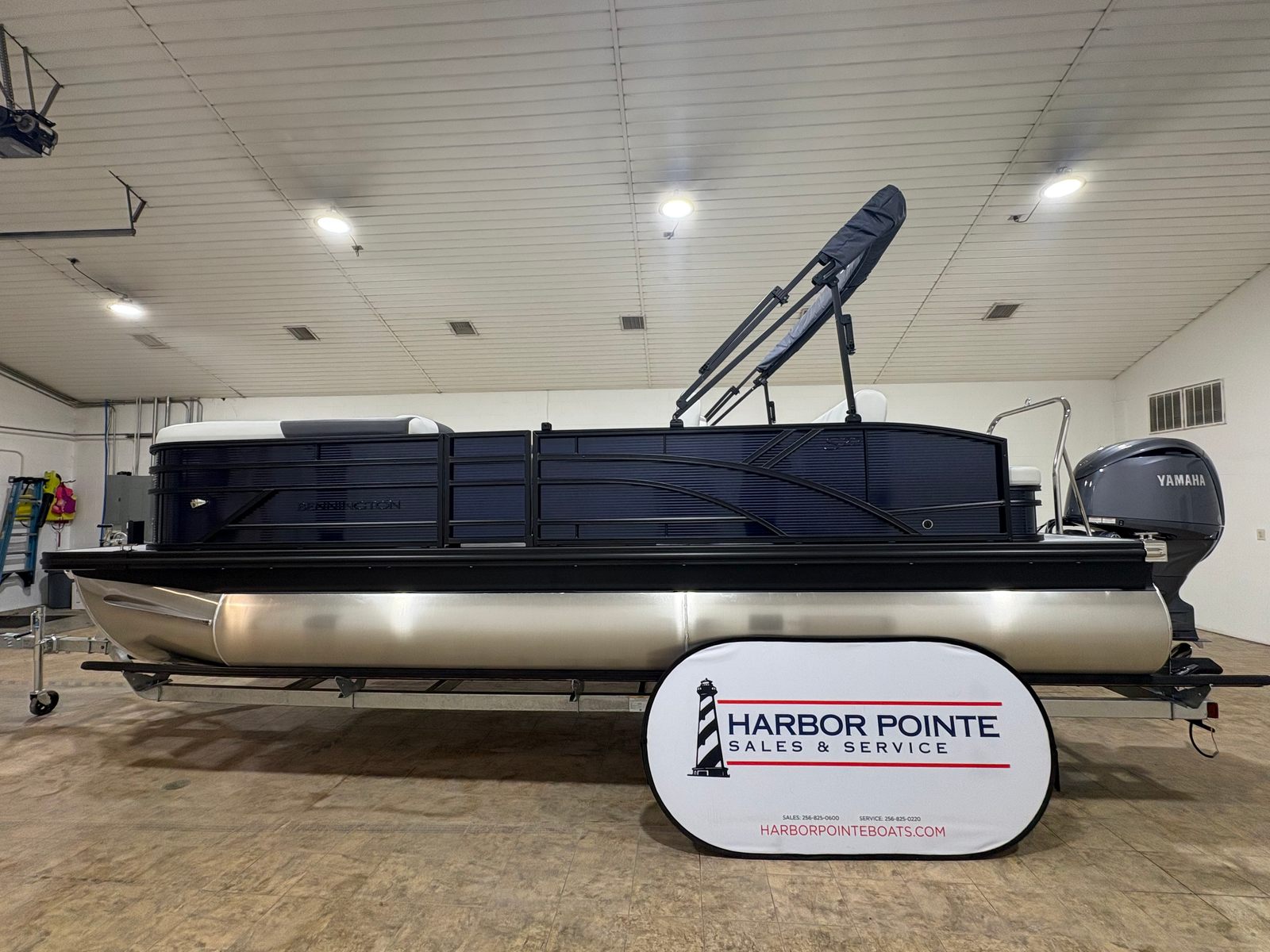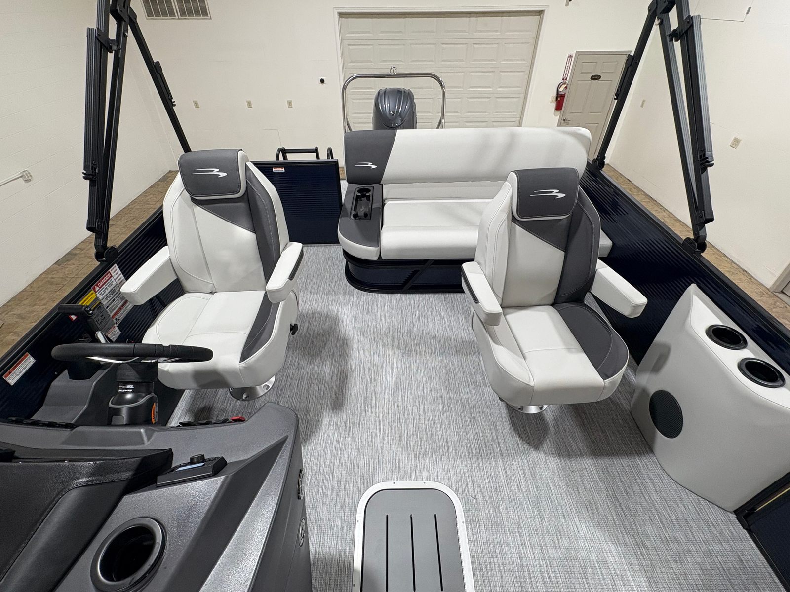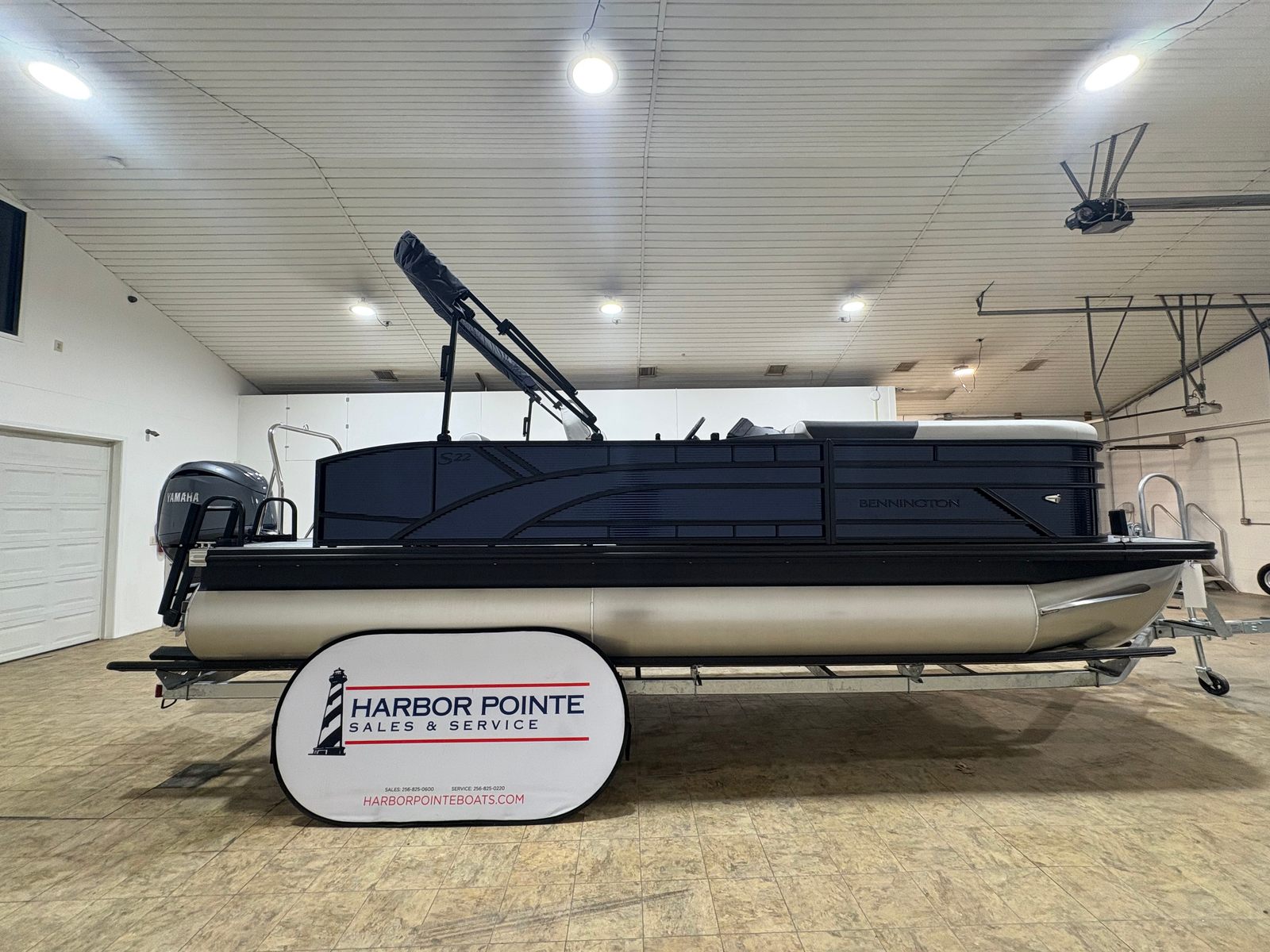 The 2026 Bennington 22 SSB SPS is a nearly 23-foot pontoon that radiates sophistication and fun. With a length of 22.92 feet, this Bennington boat for sale offers ample space for relaxation, entertainment, and adventure. The sleek Leon Light Silver exterior, complemented by the Blackout Luxe Package and Blackout Logos, ensures you’ll turn heads at every marina and sandbar. As a new pontoon, it promises pristine condition and the latest in marine innovation, making it a standout choice for those seeking a modern, stylish, and reliable vessel.