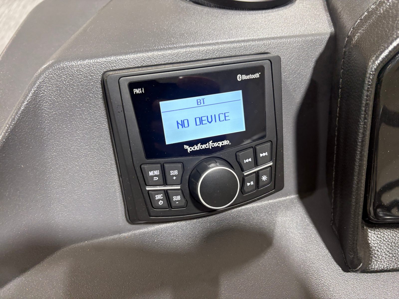The Bennington 22 SSB SPS is as practical as it is luxurious. Its nearly 23-foot length provides generous storage options for gear, snacks, and water toys, keeping the deck clutter-free and organized. The pontoon’s design makes docking and maneuvering straightforward, even for those new to boating. The Yamaha F150XD engine is known for its fuel efficiency, helping you maximize your time on the water without worrying about frequent refueling stops. The wireless charger ensures your devices are always ready for navigation, music, or capturing photos of your adventures. The durable black rub rail insert offers peace of mind when docking or tying up alongside other boats.