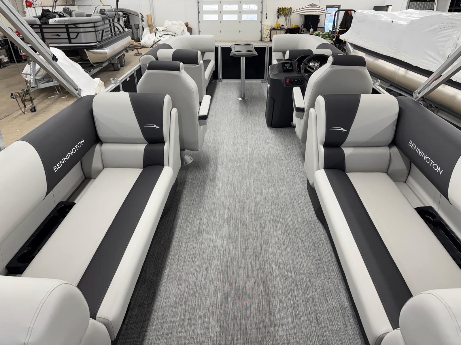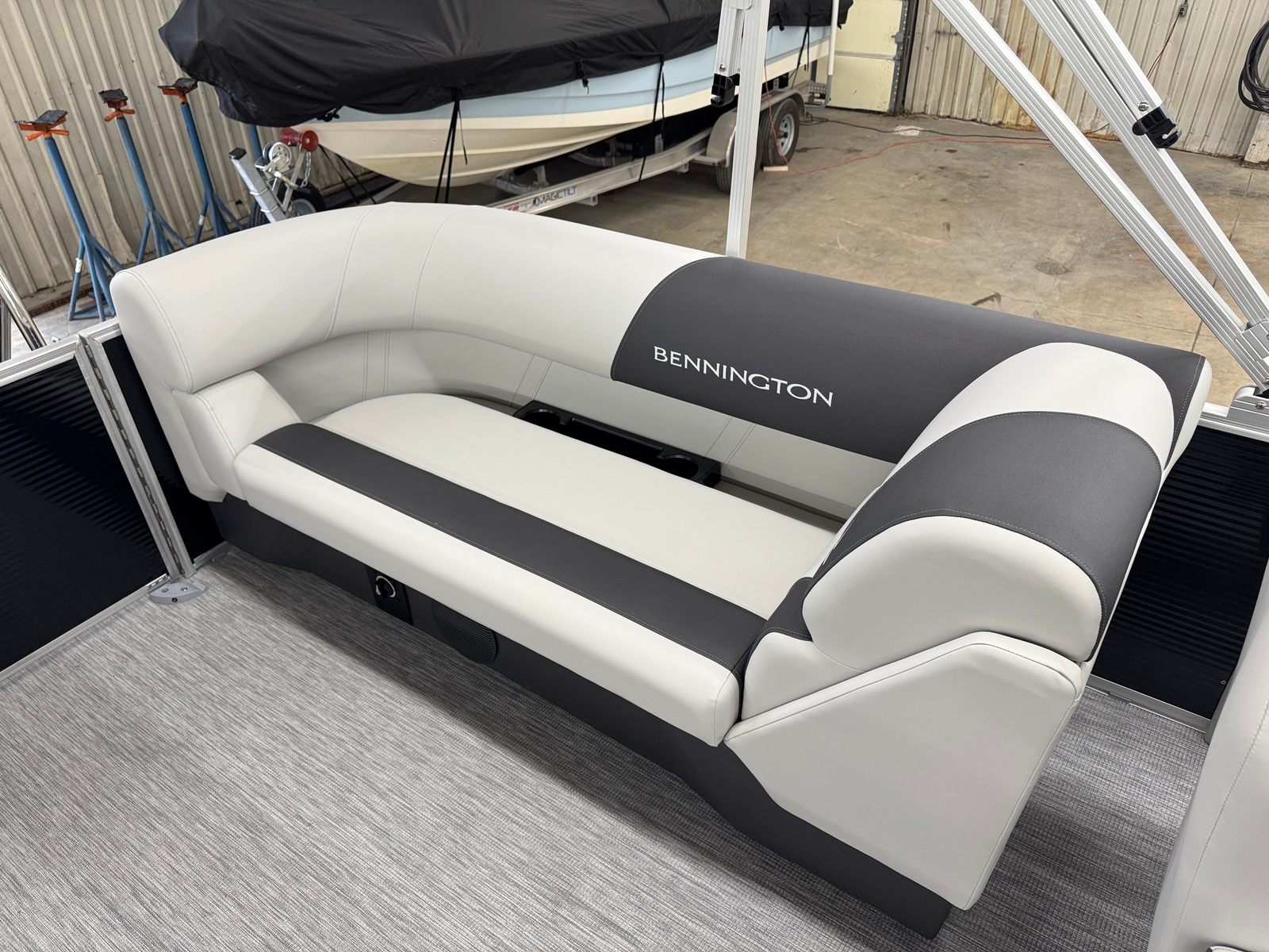 The 2026 Bennington 22 SSR SPS is loaded with special features designed to elevate your time on the water. The Switching S Analog system provides intuitive control over your boat’s functions, while the Display Main S Analog V3 Echomap offers clear, real-time navigation and system information. The striking Gemini Black panel color, complemented by a sleek black canvas and Leon Light Silver base vinyl, creates a modern and sophisticated aesthetic. Dimensional Brushed Silver Logos add a touch of elegance, while the Package Trim S Series Snap ensures a polished finish throughout the vessel. Every detail has been thoughtfully crafted to deliver both style and functionality, making this Bennington pontoon boat for sale a true standout in its class.
