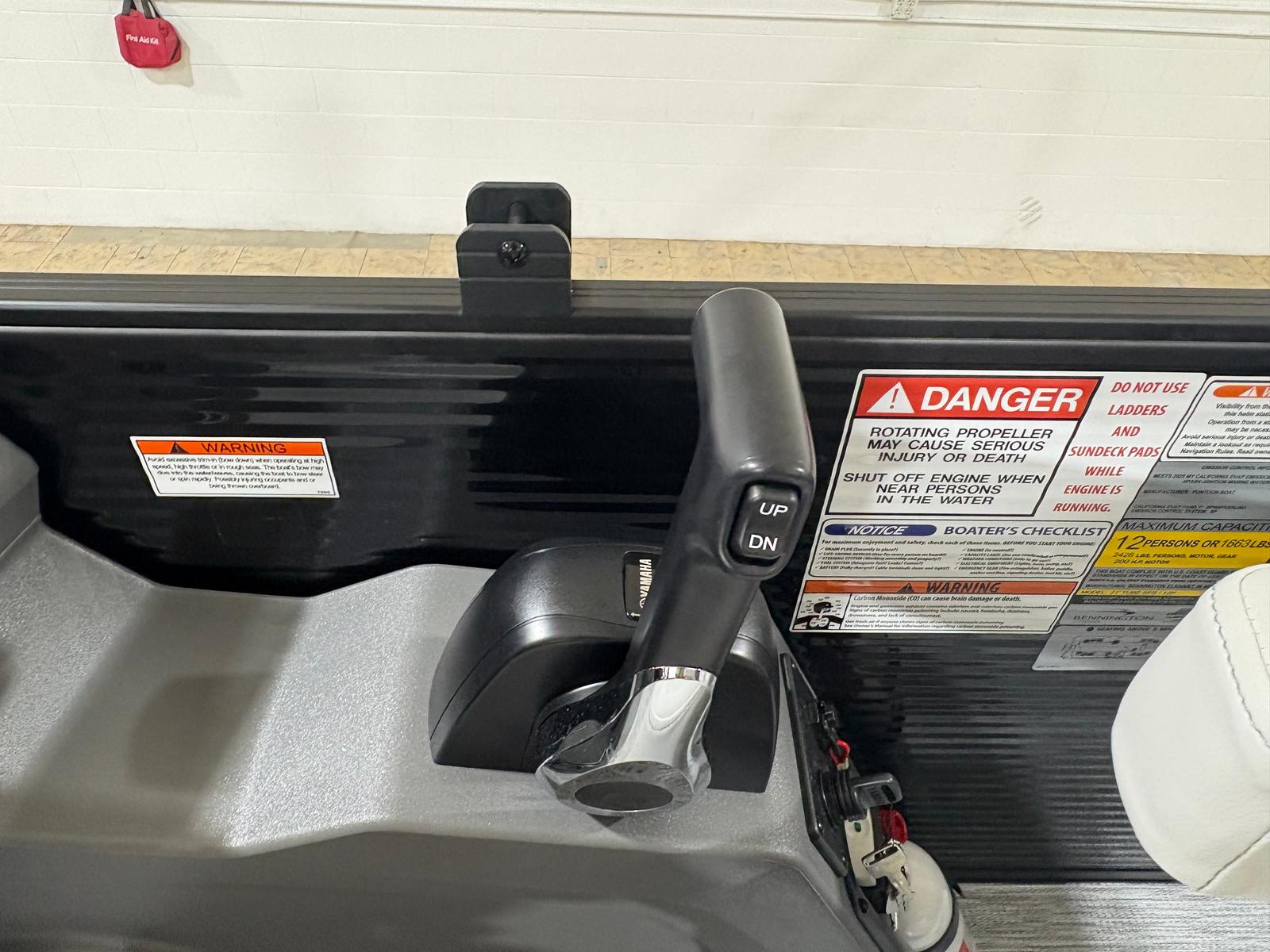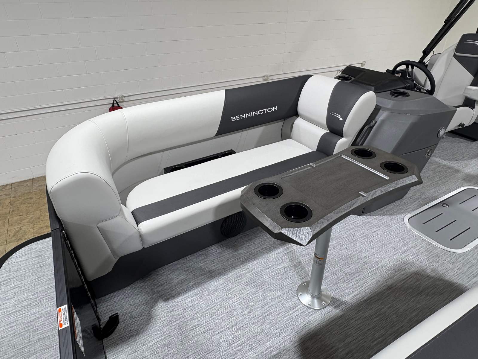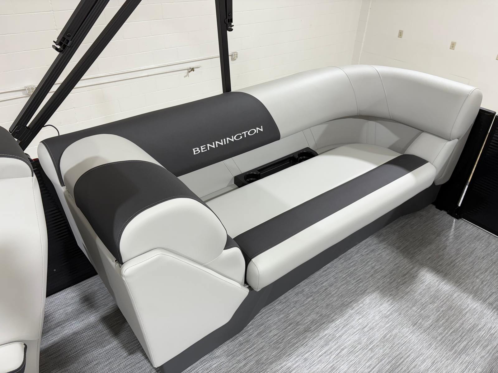 Step aboard the Bennington 22 SSR SPS and discover a world of thoughtful features designed to enhance your time on the water. The in-floor storage SPS S Series offers convenient space to stow gear, water toys, and personal items, keeping the deck clutter-free and organized. The canvas in midnight black provides stylish protection from the elements, while the Ironwood dash accent adds a touch of elegance to the helm. For those who love water sports, the ski tow bar (SPS, no extended aft deck) makes it easy to enjoy tubing, wakeboarding, or skiing with friends and family.Stay connected and powered up with the wireless charger (S), ensuring your devices are always ready for action. The blackout logos and Blackout Luxe Package (S) create a striking visual impact, while the Leon Light Silver and Gemini Black panel combination delivers a modern, upscale look. Every detail has been carefully considered to provide comfort, convenience, and style, making this Bennington boat for sale a standout choice in its class.