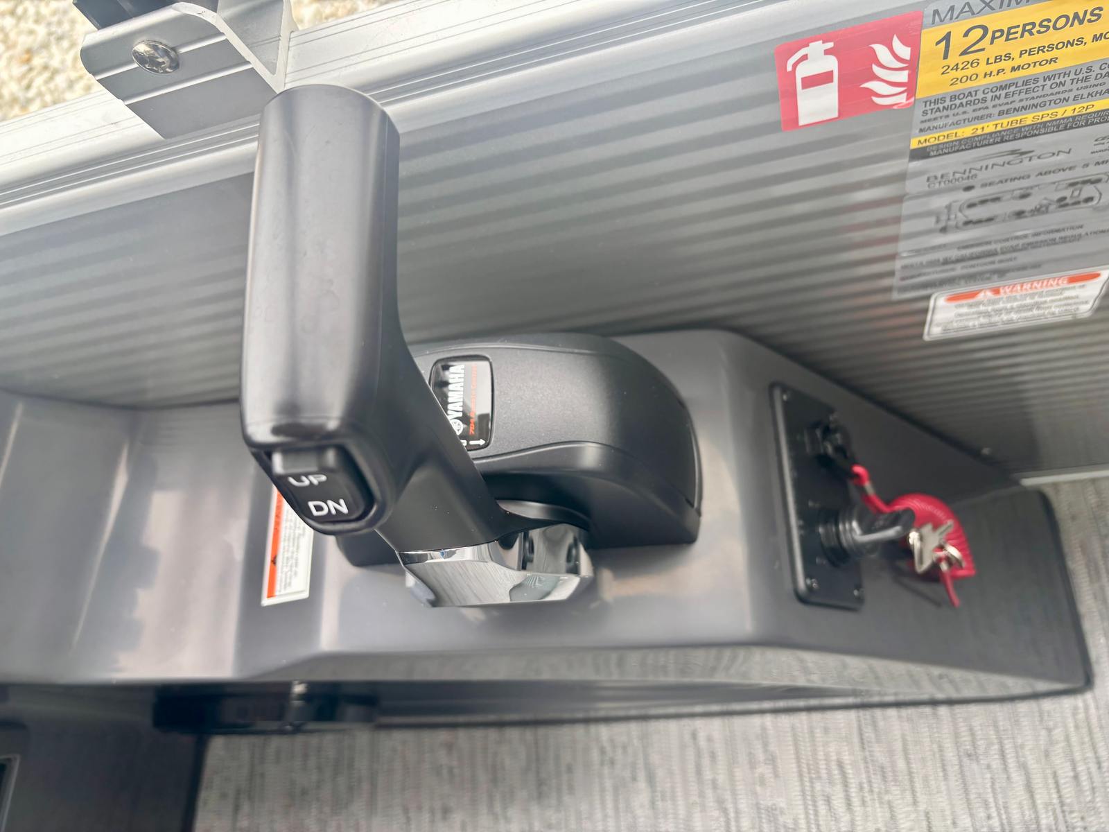 Powering the Bennington 22 SSR SPS is a robust 200 HP 4 Stroke Mechanical engine with an integrated hydraulic cylinder and a 25-inch shaft, delivering an impressive 175 horsepower. This single-engine setup is engineered for smooth acceleration, responsive handling, and reliable performance, whether you are cruising at a leisurely pace or picking up speed for watersports. The Yamaha Saltwater Anode ESP/SPS Package enhances durability and longevity, especially for those who enjoy saltwater adventures. With this powerful yet efficient engine, you can expect a thrilling ride every time you hit the water.