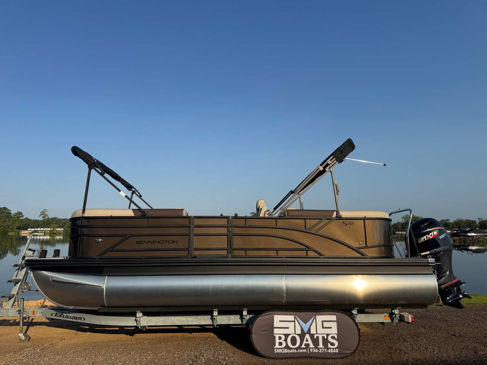 The 2026 Bennington 22 SSR SPS is a stunning pontoon boat that measures just under 23 feet in length, offering ample space for relaxation and recreation. As a new model, it showcases the latest innovations and design elements from Bennington, a brand renowned for quality and craftsmanship. The smooth metallic sorrel panels paired with midnight black canvas and Dolce/Espresso accents create a sophisticated look that turns heads at any marina or lake. Whether you’re seeking a Bennington boat for sale for family outings or social gatherings, this pontoon delivers the perfect blend of style and functionality.