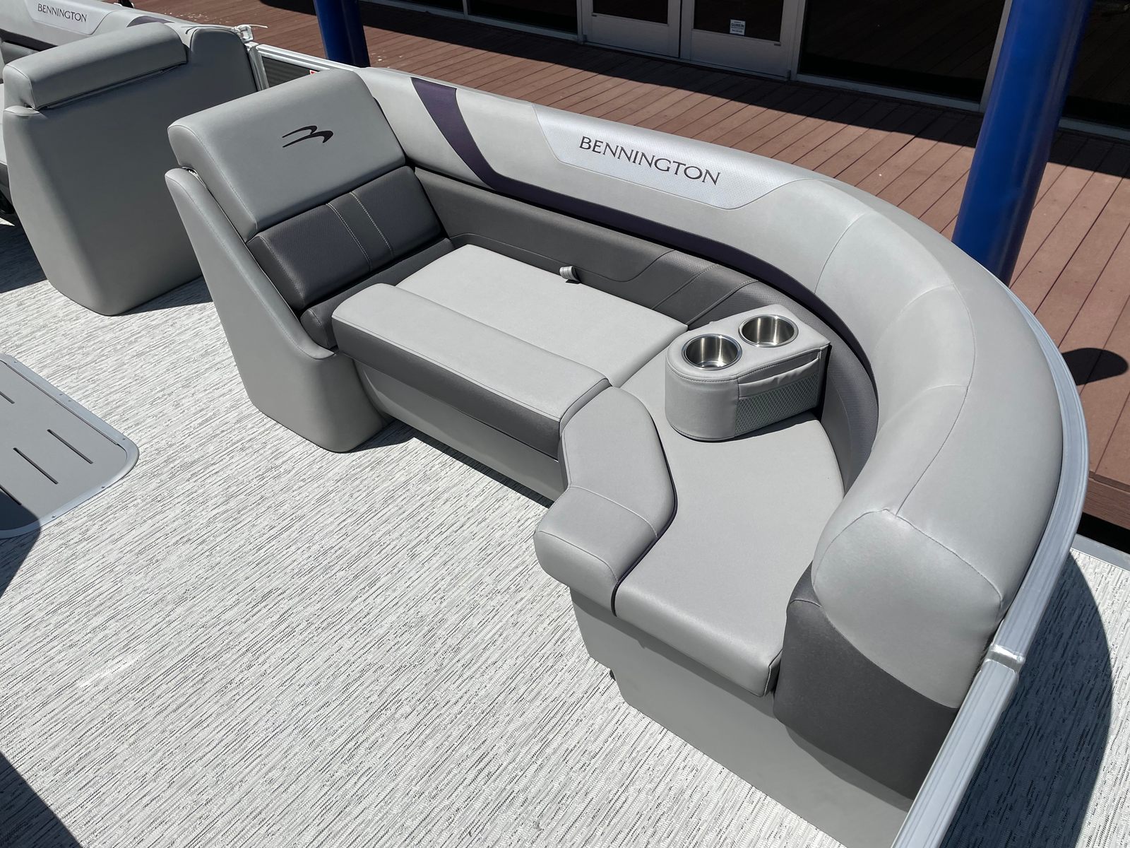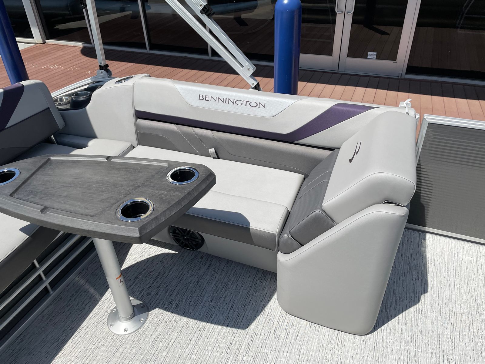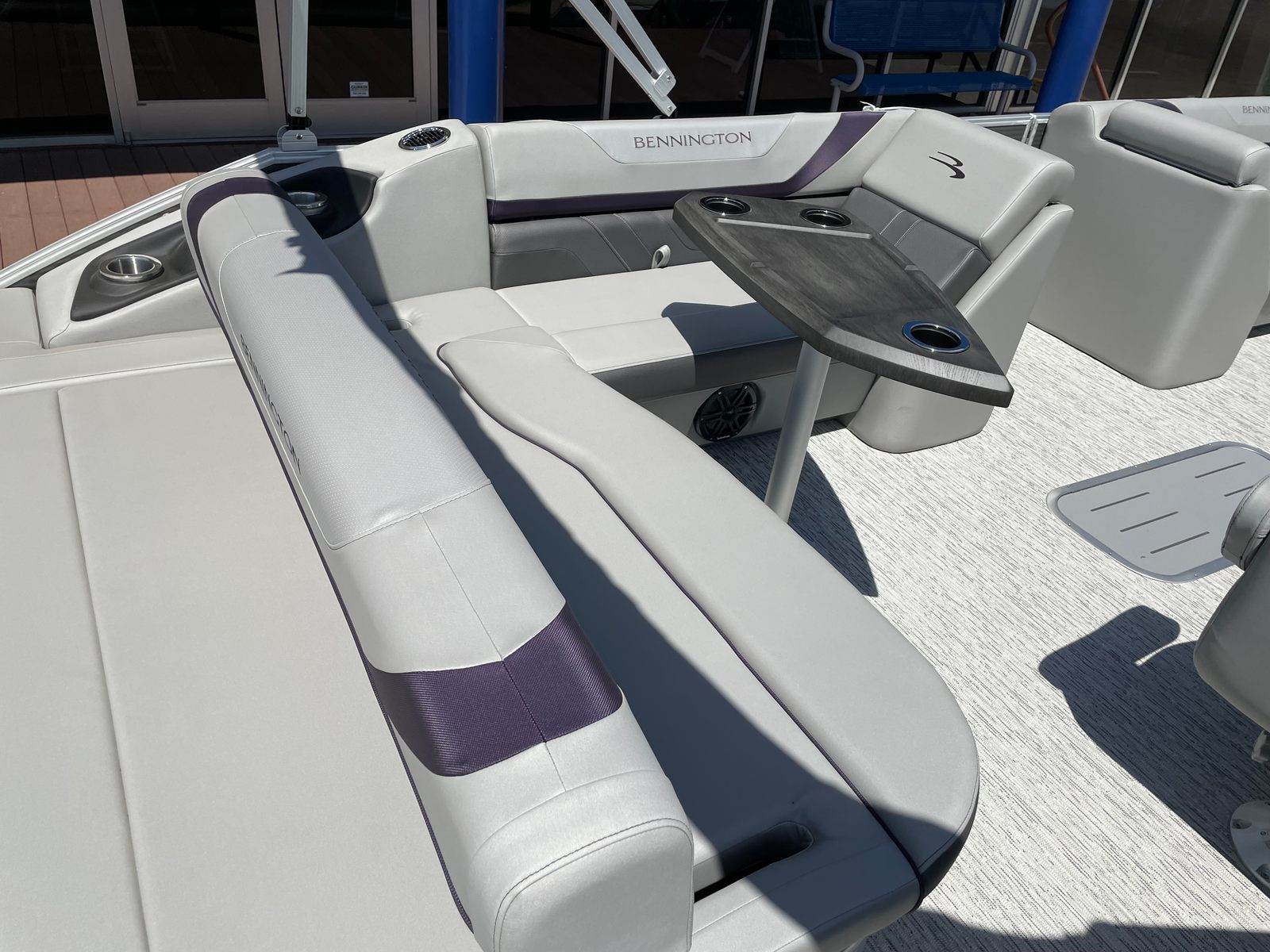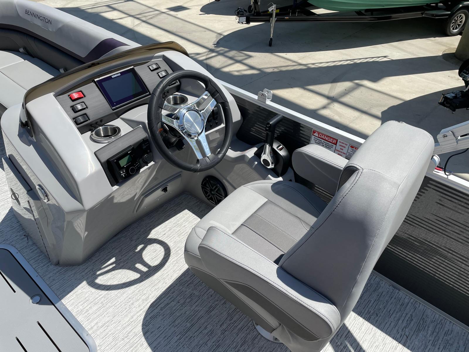 The 2025 Bennington 22 Sxsb SPS is loaded with special features that set it apart from other pontoon boats for sale. The portable armrest with stainless steel cup holders adds a touch of convenience and luxury, ensuring your favorite beverages are always within reach. Rub rail protectors safeguard the boat’s exterior, preserving its pristine appearance even after frequent docking.For those who love to set the mood, the RGB toe kick lighting and RGB controller SX allow you to customize the ambiance with vibrant, color-changing lights. The Rockford Fosgate M1 lighted speakers not only deliver premium sound quality but also enhance the atmosphere with synchronized lighting effects, making every outing feel like a celebration.The interior is adorned with Zebrawood Matte Slate accents and dimensional brushed silver logos, creating a modern and sophisticated look. Silver Simtex upholstery offers both durability and comfort, ensuring that every seat is as inviting as it is stylish. These thoughtful details make the Bennington 22 Sxsb SPS a true standout in the world of luxury pontoons.