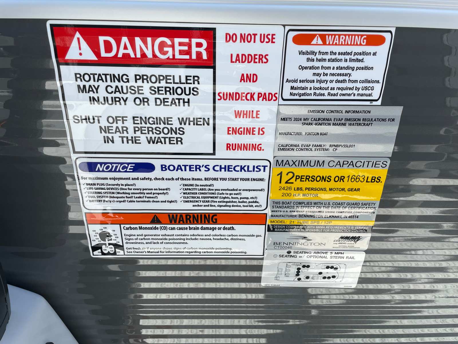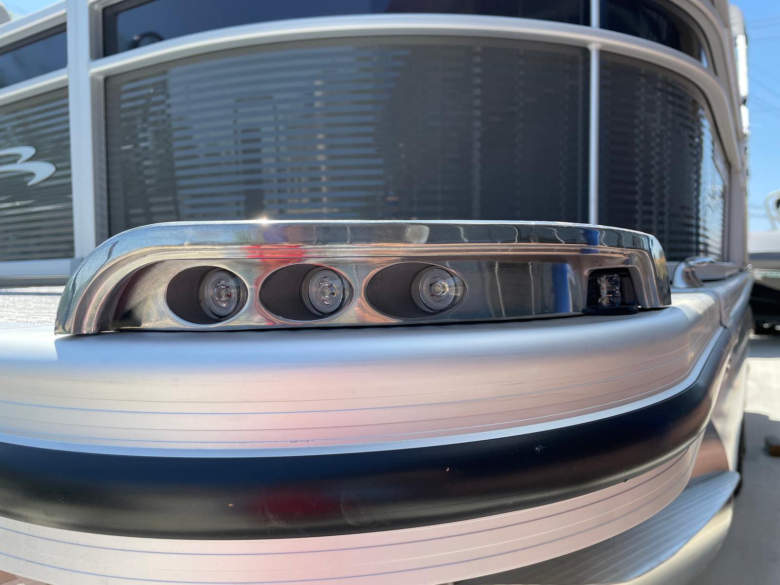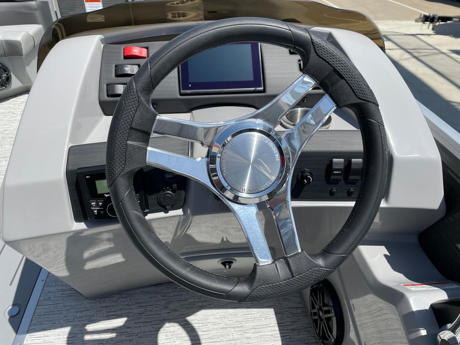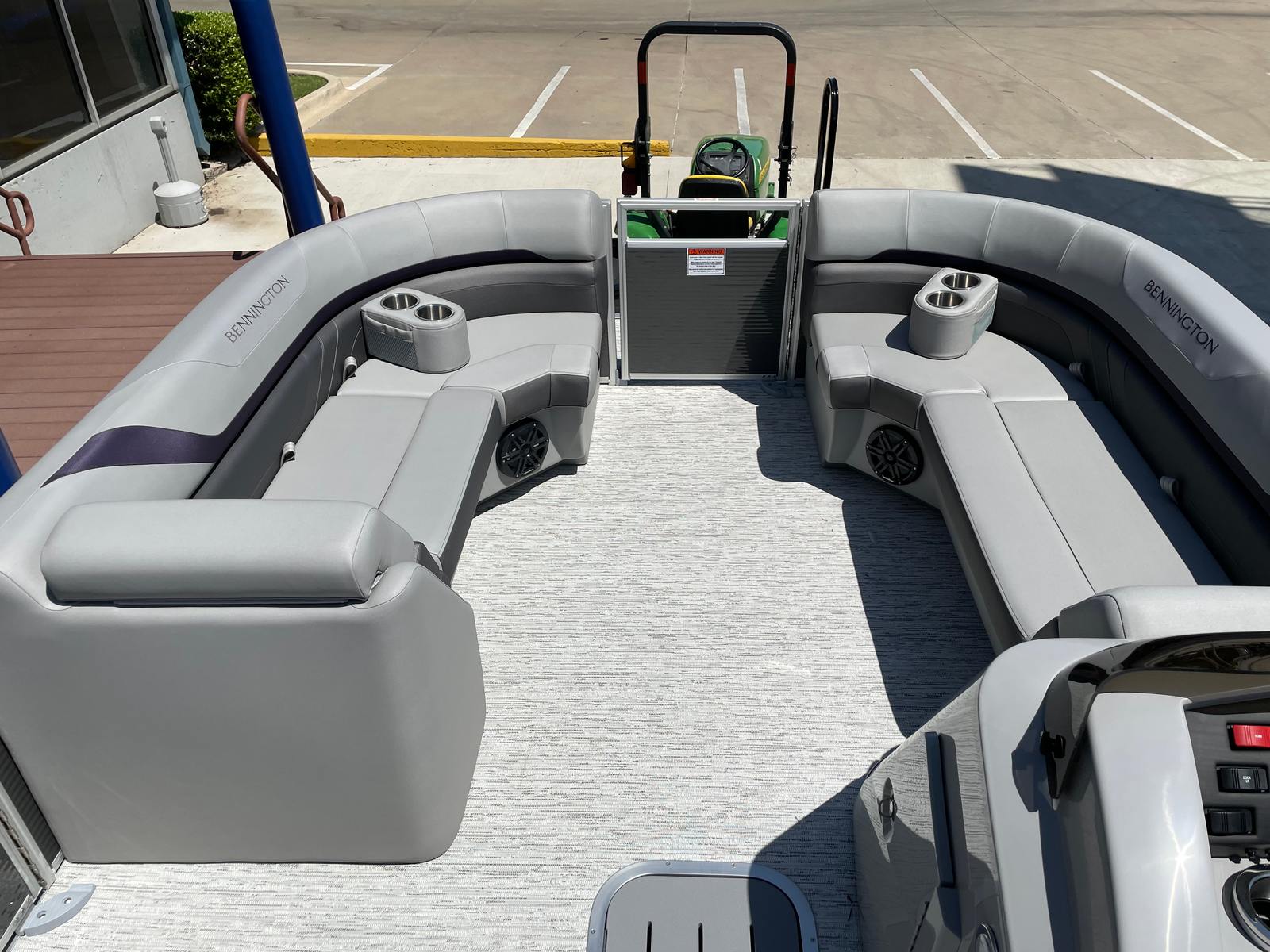 The 2025 Bennington 22 Sxsb SPS is loaded with special features that set it apart from other pontoon boats for sale. The portable armrest with stainless steel cup holders adds a touch of convenience and luxury, ensuring your favorite beverages are always within reach. Rub rail protectors safeguard the boat’s exterior, preserving its pristine appearance even after frequent docking.For those who love to set the mood, the RGB toe kick lighting and RGB controller SX allow you to customize the ambiance with vibrant, color-changing lights. The Rockford Fosgate M1 lighted speakers not only deliver premium sound quality but also enhance the atmosphere with synchronized lighting effects, making every outing feel like a celebration.The interior is adorned with Zebrawood Matte Slate accents and dimensional brushed silver logos, creating a modern and sophisticated look. Silver Simtex upholstery offers both durability and comfort, ensuring that every seat is as inviting as it is stylish. These thoughtful details make the Bennington 22 Sxsb SPS a true standout in the world of luxury pontoons.