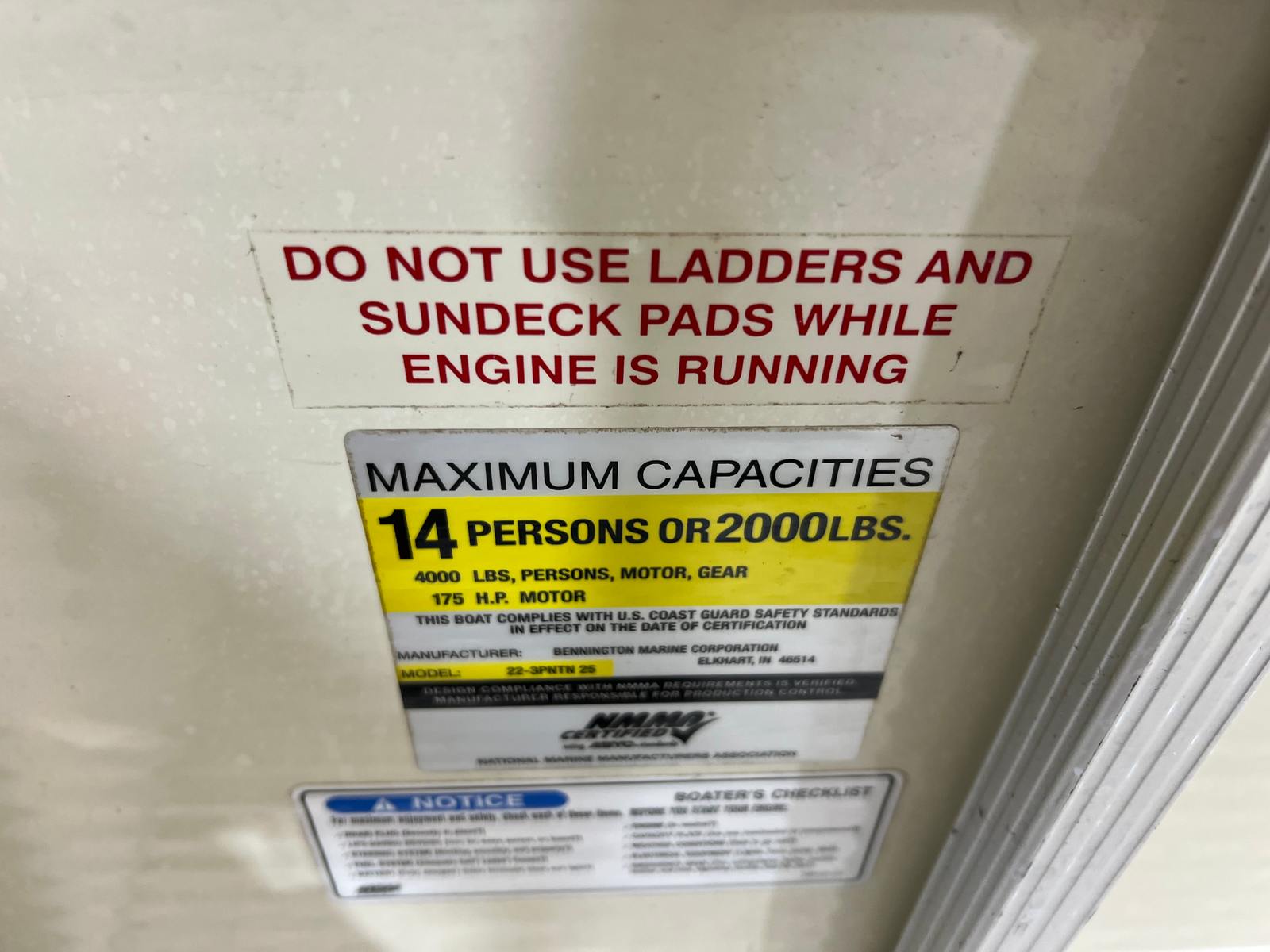 Powered by a single engine with an impressive 150 horsepower, the Bennington 2275 RL offers a smooth and responsive ride. The engine’s 407 hours demonstrate its reliability and readiness for many more seasons of enjoyment. This pontoon boat is engineered to provide efficient cruising, allowing you to glide across lakes, rivers, and calm coastal waters with ease. The 150 HP engine ensures you have the power needed for towing water toys, reaching your favorite fishing spots, or simply enjoying a spirited ride with family and friends. The combination of performance and dependability makes this Bennington boat for sale a smart choice for those who value both excitement and peace of mind on the water.