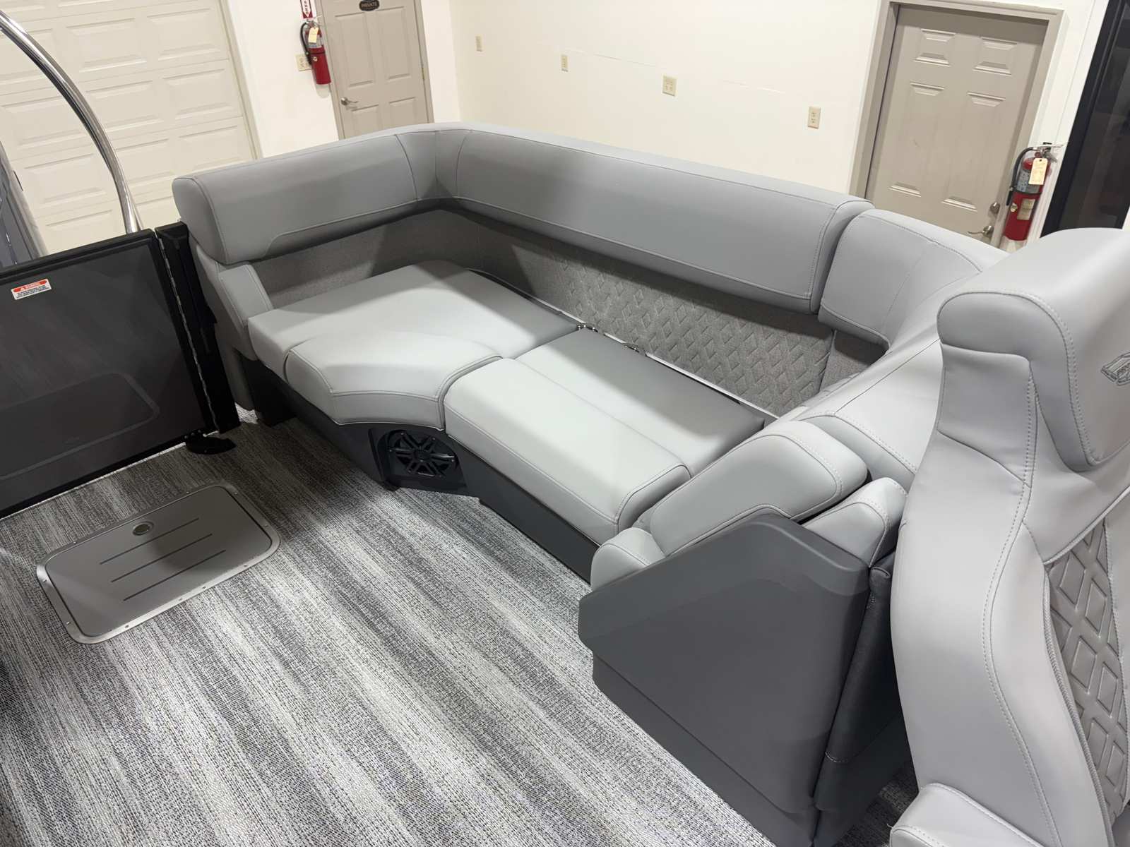 Powering the Bennington 23 MFB ESP is a robust Yamaha F250XSB engine, delivering an impressive 250 horsepower. This powerful outboard ensures smooth acceleration, responsive handling, and the ability to cruise effortlessly across lakes, rivers, and coastal waters. The Yamaha Integrated Steering Pre-Rig enhances maneuverability, providing precise control whether you are docking, navigating tight spaces, or enjoying high-speed runs. With this advanced engine setup, you can expect a thrilling yet comfortable ride every time you hit the water.