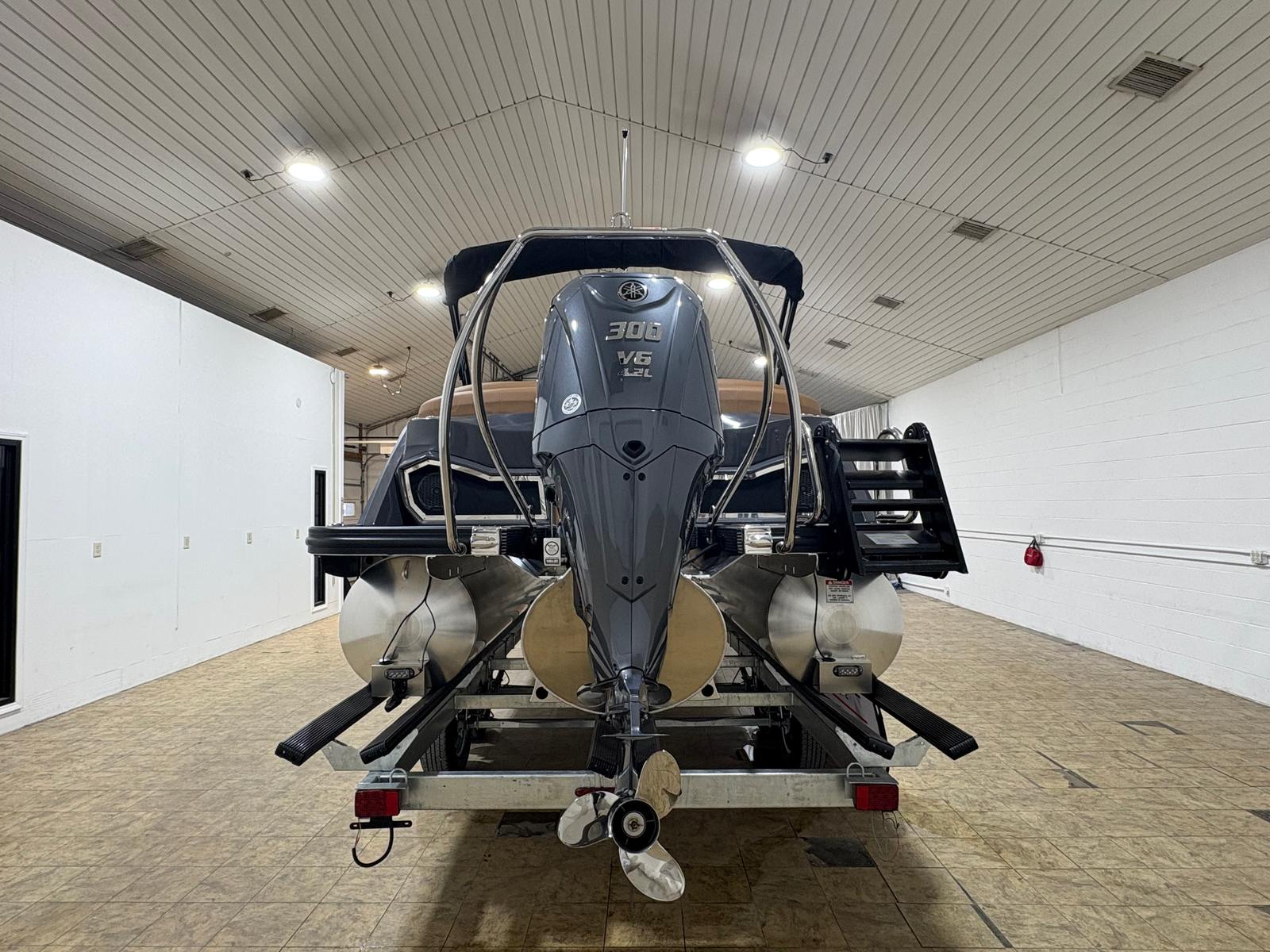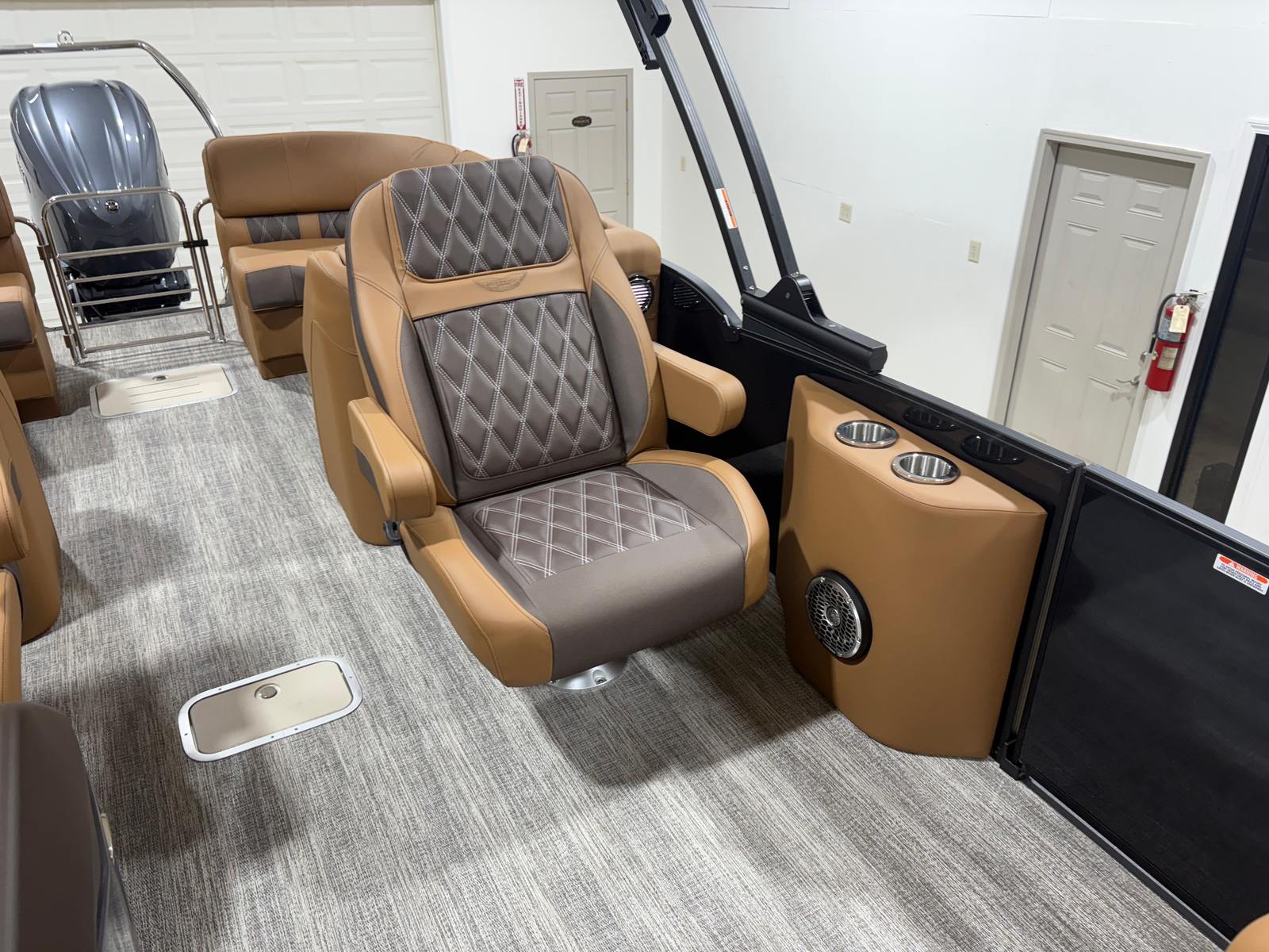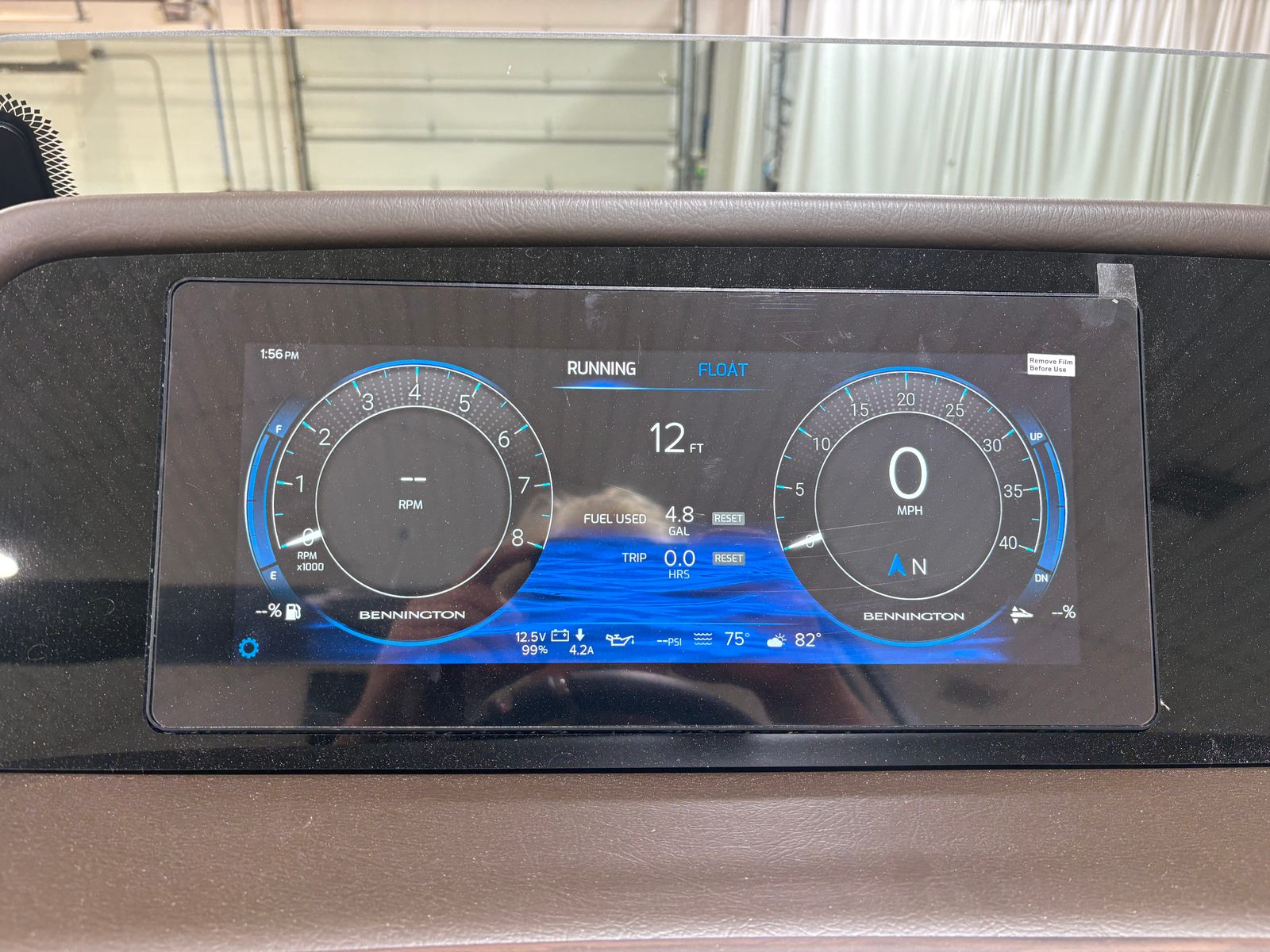 The Bennington 23 RFB ESP Pontoon is designed with practicality in mind, making ownership easy and enjoyable. Its generous length provides ample storage for gear, water toys, and personal items, ensuring everything you need is always within reach. The electric power top curved Bimini offers quick and effortless shade, while the integrated steering system simplifies docking and maneuvering in tight spaces.Fuel efficiency is a hallmark of the Yamaha F300XSB engine, allowing you to spend more time on the water and less time at the pump. The illuminated cupholders and lighting features enhance safety and visibility during nighttime excursions, while the durable construction ensures years of reliable performance. Whether you’re a seasoned boater or new to the hobby, the Bennington 23 RFB ESP makes every aspect of boating more convenient and enjoyable.