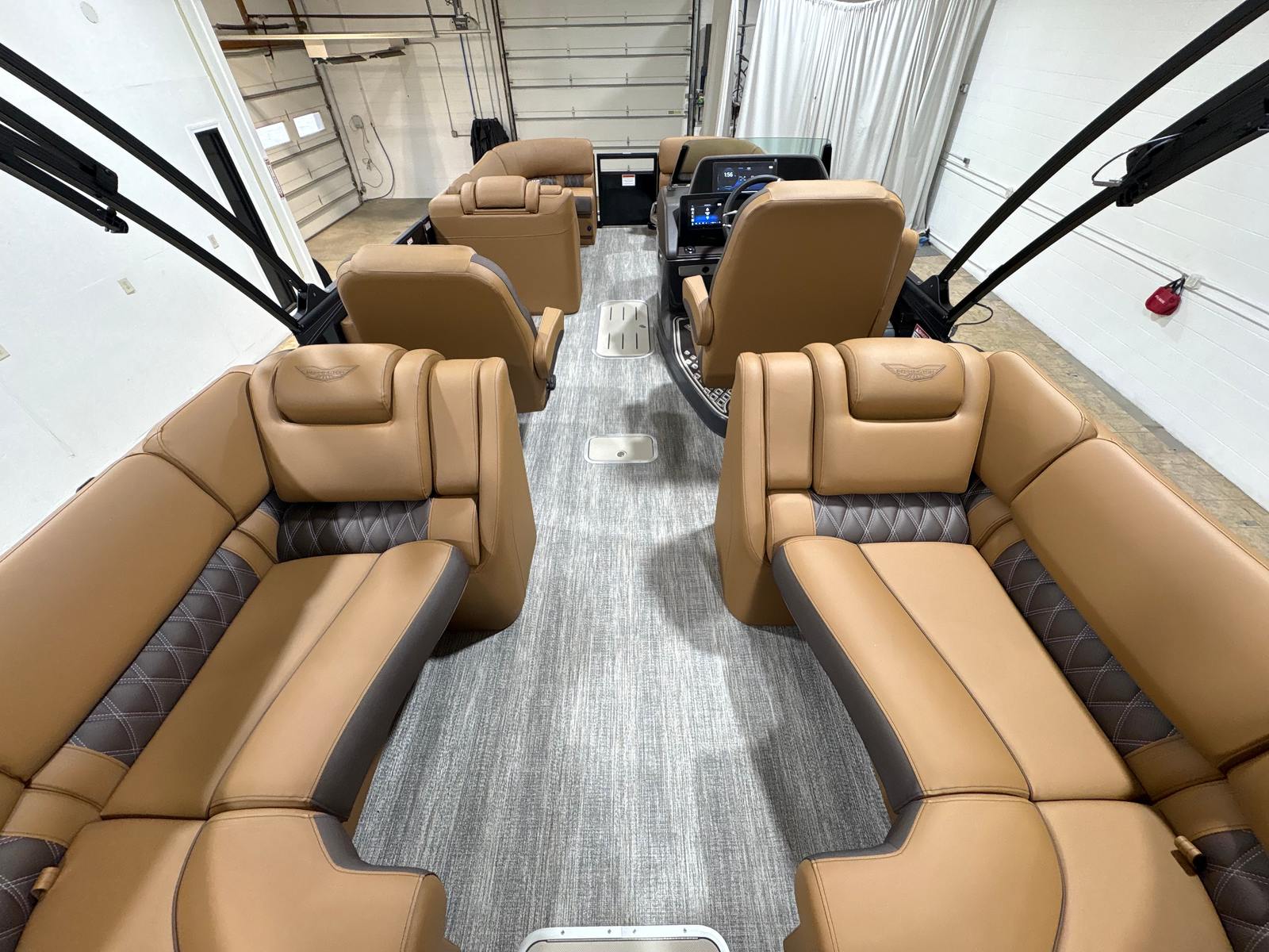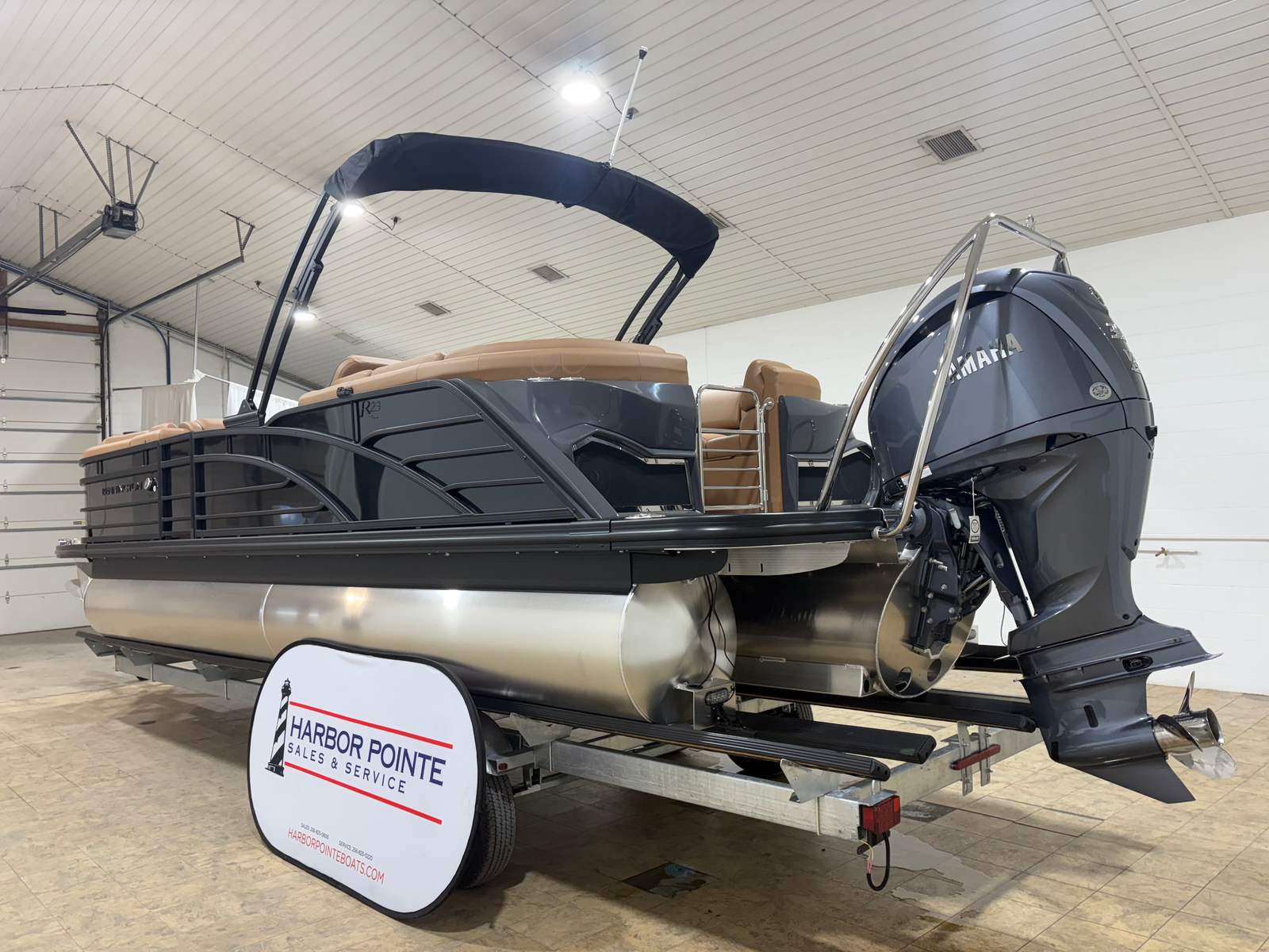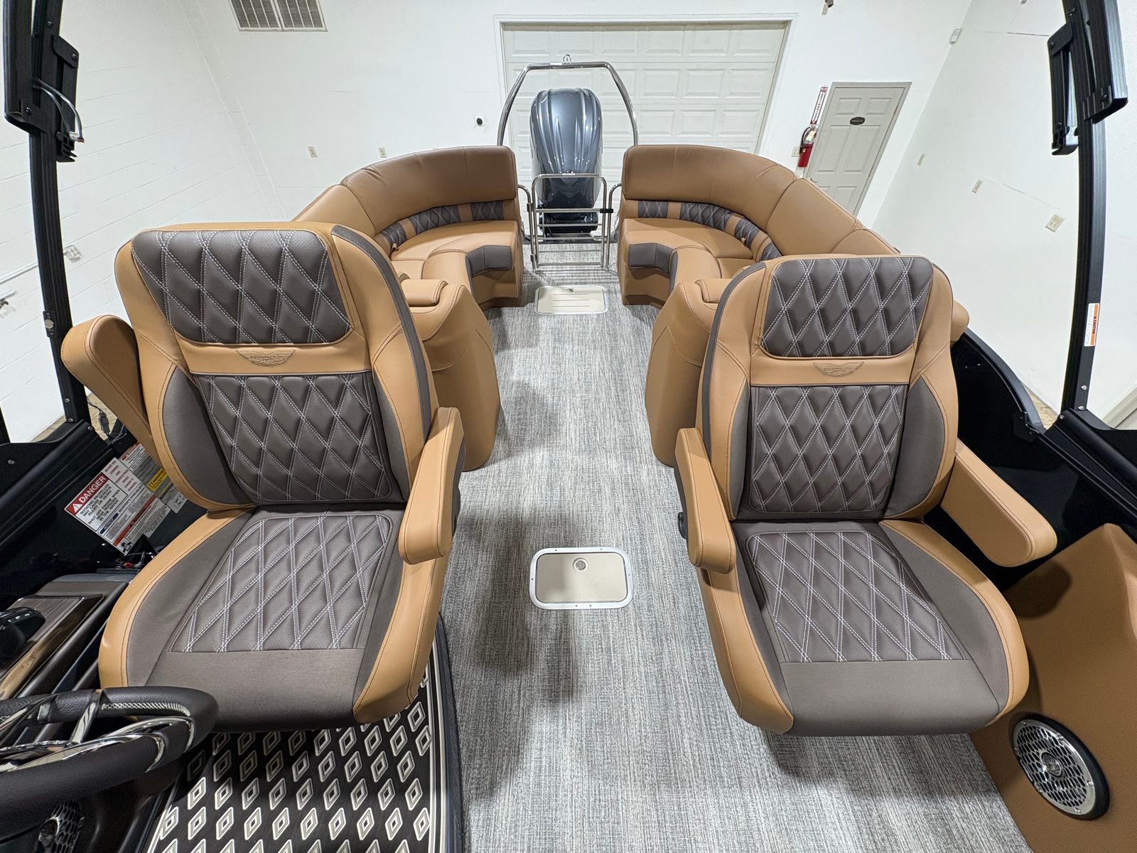 The Bennington 23 RFB ESP Pontoon is designed with practicality in mind, making ownership easy and enjoyable. Its generous length provides ample storage for gear, water toys, and personal items, ensuring everything you need is always within reach. The electric power top curved Bimini offers quick and effortless shade, while the integrated steering system simplifies docking and maneuvering in tight spaces.Fuel efficiency is a hallmark of the Yamaha F300XSB engine, allowing you to spend more time on the water and less time at the pump. The illuminated cupholders and lighting features enhance safety and visibility during nighttime excursions, while the durable construction ensures years of reliable performance. Whether you’re a seasoned boater or new to the hobby, the Bennington 23 RFB ESP makes every aspect of boating more convenient and enjoyable.