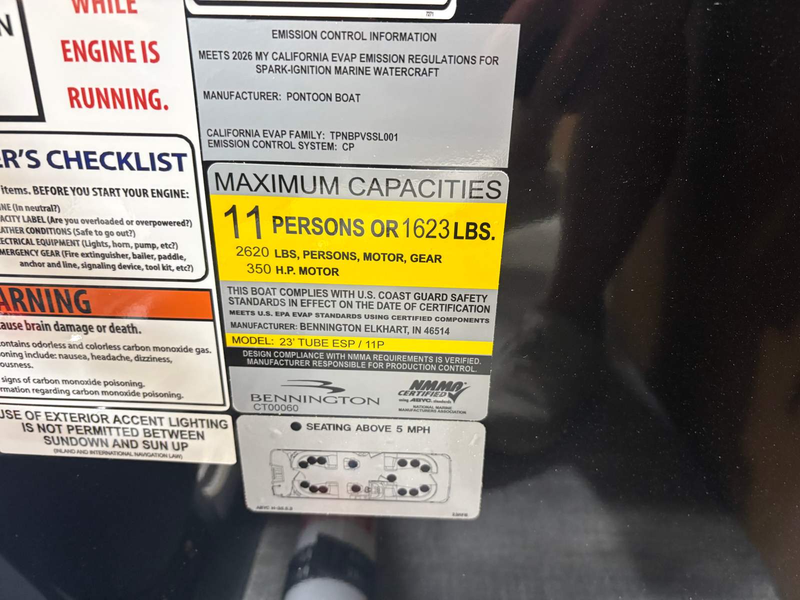 The 2026 Bennington 23 RFB ESP Pontoon is a remarkable blend of style, performance, and innovation. With its powerful Yamaha F300XSB engine, Yamaha Integrated Steering Pre-Rig, illuminated cupholders, exterior side lighting, underwater lighting, toekick lights, blackout logos, electric power top curved Bimini, Rockford Fosgate audio system, and Zebrawood Matte Beige accents, this Bennington boat for sale is designed to elevate your boating experience.Whether you’re seeking adventure, relaxation, or social connection, the Bennington 23 RFB ESP delivers on every front. Don’t miss your chance to own this exceptional pontoon boat for sale. Contact the dealer today to learn more and start your journey toward unforgettable moments on the water.
