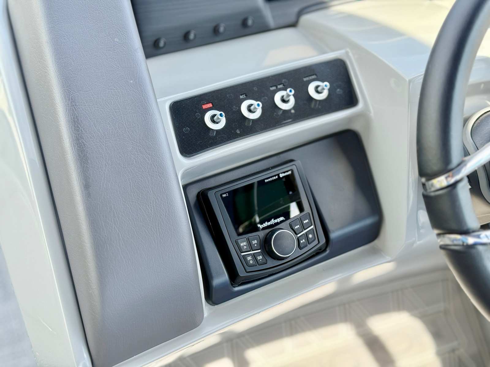 Powering the Bennington 23 Rxfb SPS Plus is a robust 250-horsepower engine, ensuring a thrilling and responsive ride every time you hit the water. With a single engine configuration, this pontoon is engineered for both efficiency and excitement. The Yamaha Base Mechanical Pre-Rig NSX7 ensures seamless integration and optimal performance, allowing you to enjoy smooth acceleration and reliable handling. The Steering - Power Hydraulic Assist feature further enhances your control, making docking and navigating tight spaces effortless. Whether you are cruising at a leisurely pace or picking up speed for watersports, this Bennington boat for sale offers a dynamic and enjoyable ride.