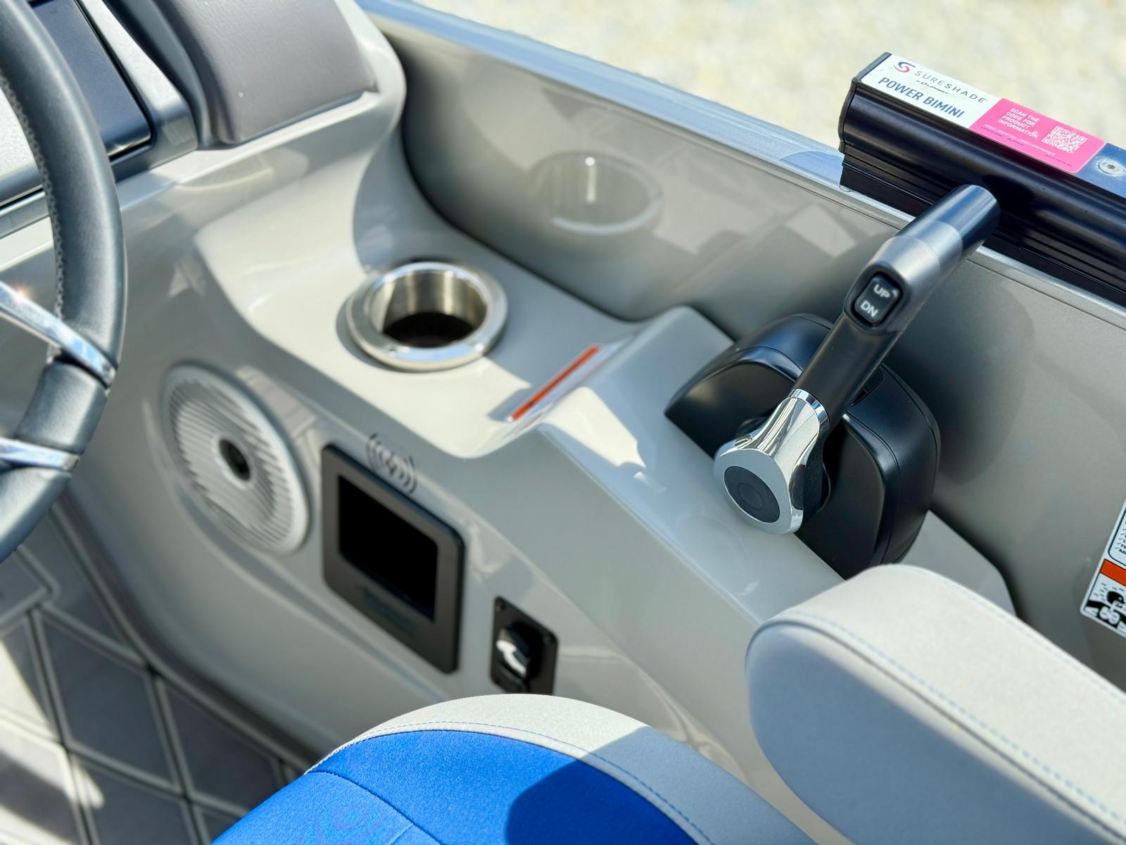 Step aboard the Bennington 23 Rxfb SPS Plus and you will immediately notice the thoughtful design and premium features that set it apart. The elevated helm provides an enhanced vantage point, giving the captain superior visibility and command of the vessel. The Stainless Steel Corvina Wheel (Black) adds a touch of sophistication, while the console storage pocket with cupholder (Silver) ensures your essentials are always within reach.Comfort is paramount on this pontoon, thanks to the Pillowtop Diamond Stitched Upholstery and Silver Simtex materials that create a plush, inviting atmosphere for all passengers. The Porta Pott adds a layer of convenience for longer outings, ensuring everyone stays comfortable throughout the day. The combination of Zebrawood Matte Slate and Metallic Silver paneling delivers a modern, upscale aesthetic that is both stylish and durable.