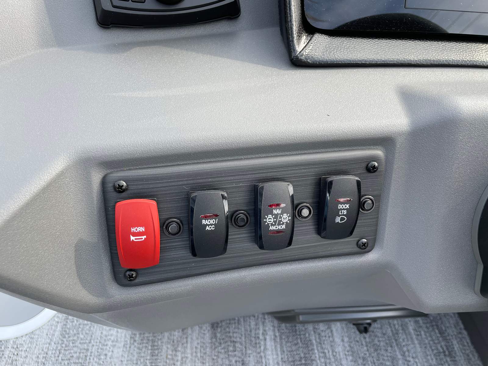 Step aboard the Bennington 23 SSB SPS Plus and discover a host of premium features designed to maximize comfort, convenience, and entertainment. The dual battery switch with fuse ensures reliable power management, giving you peace of mind during extended outings. Lighted cupholders add a touch of elegance and practicality, making evening cruises both stylish and functional.Music lovers will appreciate the Rockford Fosgate 6.5" M1 Lighted Speakers, complete with an RGB control upgrade, allowing you to set the perfect mood with customizable lighting and high-quality sound. The Serene Soft Touch Vinyl with Simtex Accents provides plush, durable seating that invites you to relax in luxury, while the Blackout Logos add a modern, sophisticated edge to the boat’s appearance.