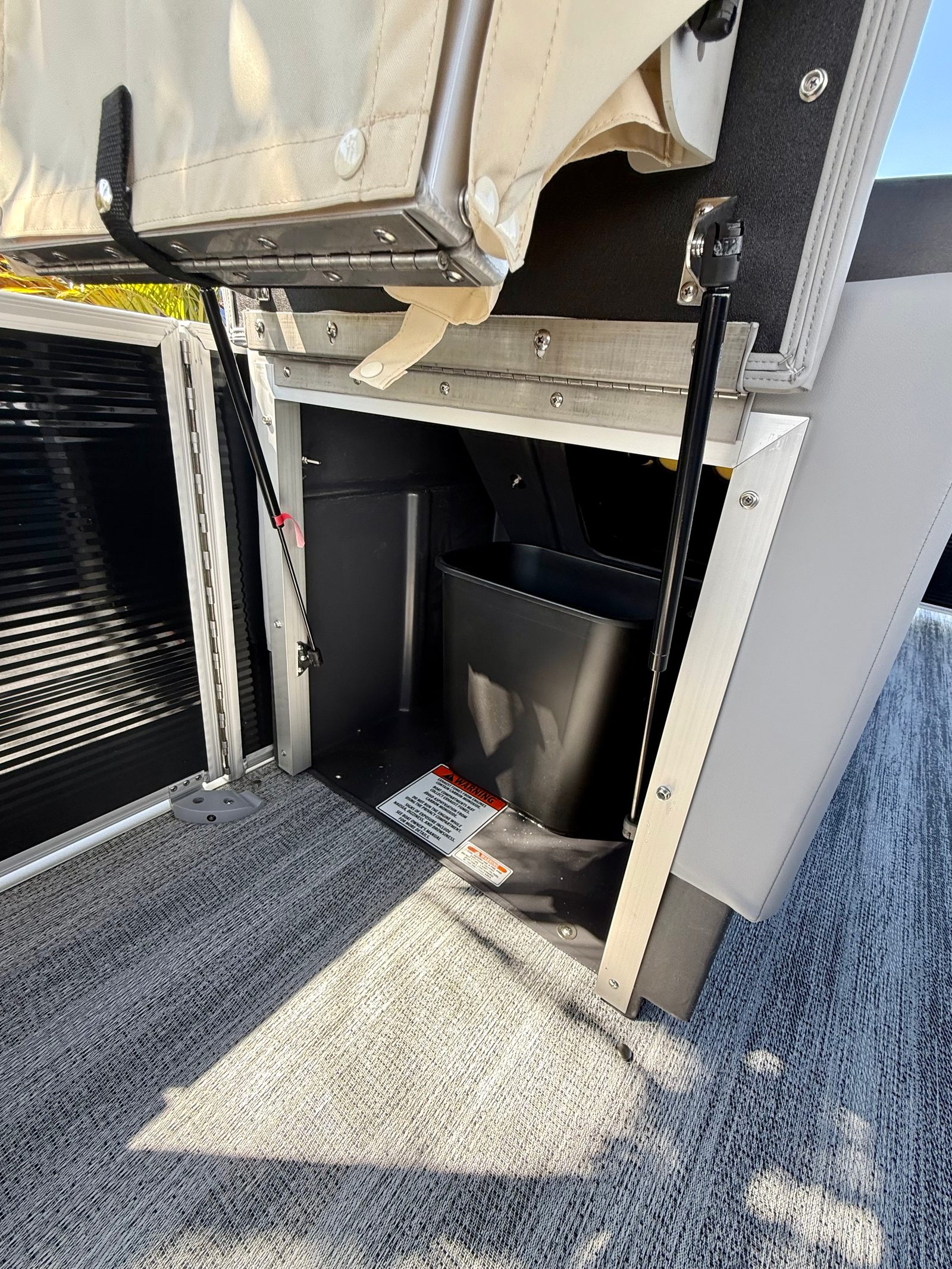 This pontoon boat is packed with special features designed to maximize comfort, convenience, and enjoyment. The Sunshine Package creates a bright and inviting atmosphere, perfect for sunny days spent on the water. The Serene Soft Touch Vinyl with Simtex Accents elevates the seating experience, providing plush support and a refined look throughout the boat. The double bimini standard (16.5') offers generous shade, allowing you to relax and socialize in comfort even during the hottest afternoons. The Ironwood Dash Accent adds a luxurious touch to the helm, while the canvas in Midnight Black and the Shadow Grey and Shoreline Grey color scheme deliver a modern, sophisticated aesthetic. The SPS+ Performance Package includes a 33-gallon transom direct fill, ensuring you have plenty of fuel capacity for longer excursions. Every detail of the Bennington 23 SSR SPS Plus is thoughtfully designed to enhance your time on the water.