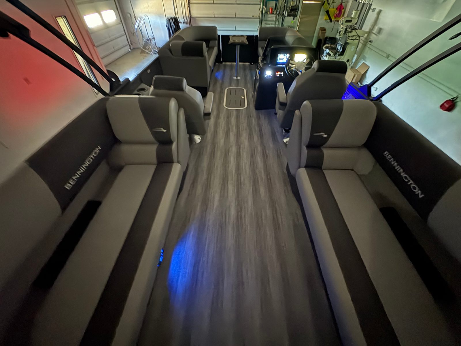 The Bennington 23 SSR SPS Pontoon shines in a variety of scenarios, making it the perfect choice for families, couples, and boating enthusiasts alike. Imagine spending a sunny afternoon anchored in a quiet cove, swimming and relaxing with loved ones. Host a lively gathering with friends, enjoying music, drinks, and laughter on the spacious deck. Take advantage of the boat’s performance capabilities for water sports, tubing, or exploring new waterways.For those who appreciate luxury and comfort, the plush seating and elegant finishes create a resort-like atmosphere on the water. The boat’s versatile layout makes it equally suited for fishing trips, with plenty of room for gear and easy access to your favorite spots. Whether you’re seeking adventure or relaxation, the Bennington 23 SSR SPS adapts to your lifestyle and delivers an unparalleled boating experience.